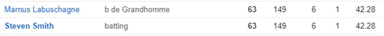 லபுஷேன் 149 பந்தில் 6 பவுண்டரி, ஒரு சிக்ஸருடன் 63 ரன்களை குவித்து ஆட்டமிழந்திருந்தார் அல்லவா... ஸ்மித்தும் ஒரு கட்டத்தில், மிகச்சரியாக அதே 149 பந்தில் அதே 6 பவுண்டரிகள் மற்றும் ஒரு சிக்ஸருடன் அதே 63 ரன்களை அடித்திருந்தார். இந்த ஸ்கோர் கார்டு அவர்கள் இருவரின் அணுகுமுறையும் ஒரே மாதிரி இருப்பதை காட்டுகிறது.