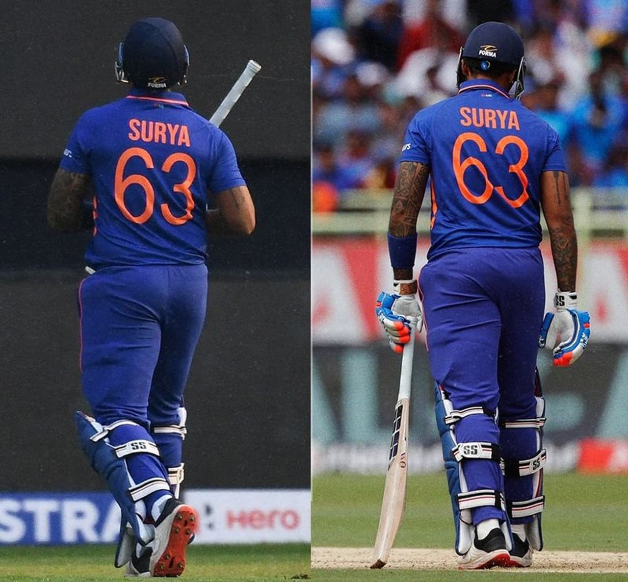 இதற்கு முன்னதாக இரு அணிகளுக்கு இடையிலான முதல் ஒரு நாள் போட்டியிலும், 4.6ஆவது ஓவரில் மிட்செல் ஸ்டார் ஸ்டார் பந்தில் எல்பிடபிள்யூ முறையில் ஆட்டமிழந்தார். அவர் சந்தித்த முதல் பந்திலேயே கோல்டன் டக் முறையில் வெளியேறியது இது முதல் முறையாகும். தற்போது 2ஆவது ஒரு நாள் போட்டியில் 4.5ஆவது பந்தில் கோல்டன் டக் முறையில் 2ஆவது முறையாக ஆட்டமிழந்துள்ளார் என்பது குறிப்பிடத்தக்கது. இதன் மூலமாக 2 போட்டிகளில் அடுத்தடுத்து கோல்டன் டக் முறையில் ஆட்டமிழந்த வீரர் என்ற சாதனையை சூர்யகுமார் யாதவ் படைத்துள்ளார்.