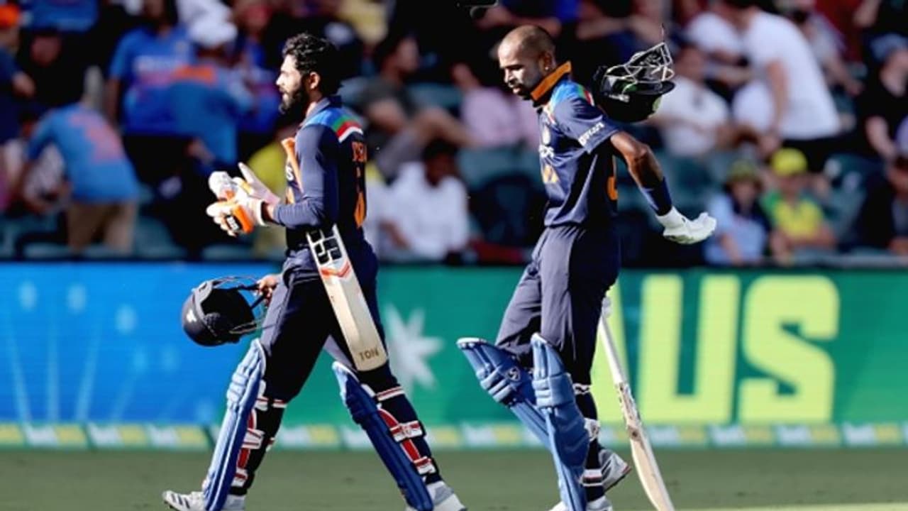 அதிரடியாக ஆடி அரைசதம் அடித்த ஹர்திக் பாண்டியா 76 பந்தில் 7 பவுண்டரிகள் மற்றும் ஒரு சிக்ஸருடன் 92 ரன்களும், ஜடேஜா 50 பந்தில் ஐந்து பவுண்டரிகள் மற்றும் 3 சிக்ஸர்களுடன் 66 ரன்களும் அடித்து கடைசி வரை களத்தில் இருந்தனர். பாண்டியா மற்றும் ஜடேஜாவின் கடைசி நேர அதிரடியால் இந்திய அணி ஐம்பது ஓவரில் 302 ரன்களை குவித்து 303 ரன்கள் என்ற இலக்கை ஆஸ்திரேலியாவிற்கு நிர்ணயித்துள்ளது.