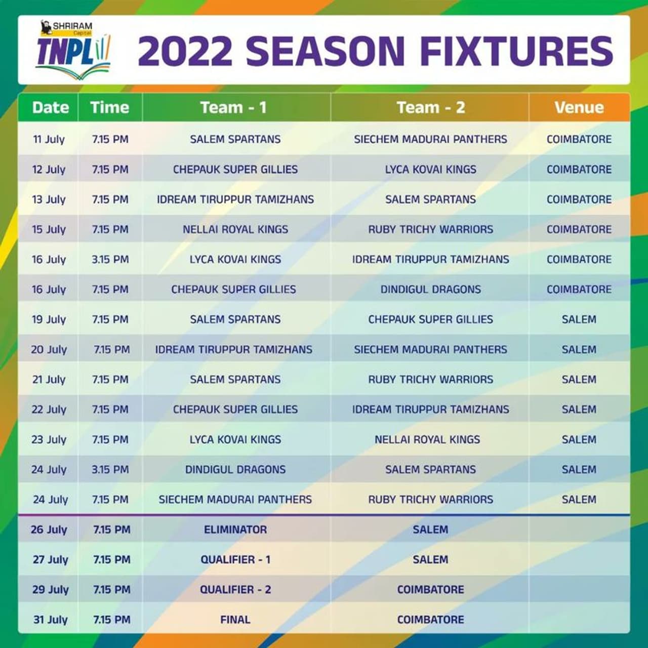 தமிழ்நாடு பிரீமியர் லீக் தொடரில் ஆடும் அணிகள், போட்டி அட்டவணை உட்பட முக்கியமான விவரங்களை பார்ப்போம்.