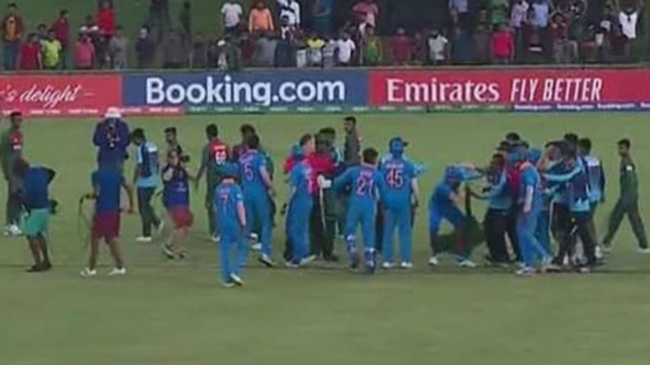 அண்டர் 19 உலக கோப்பை இறுதி போட்டியில் வங்கதேச அணி வெற்றி பெற்ற நிலையில், போட்டிக்கு பின்னர் இந்தியா மற்றும் வங்கதேச அணி வீரர்களுக்கு இடையே கடும் மோதல் ஏற்பட்டது. இரு அணி வீரர்களும் மைதானத்தில் மோதிக்கொண்டதால் சிறிது நேரம் பரபரப்பு ஏற்பட்டது.