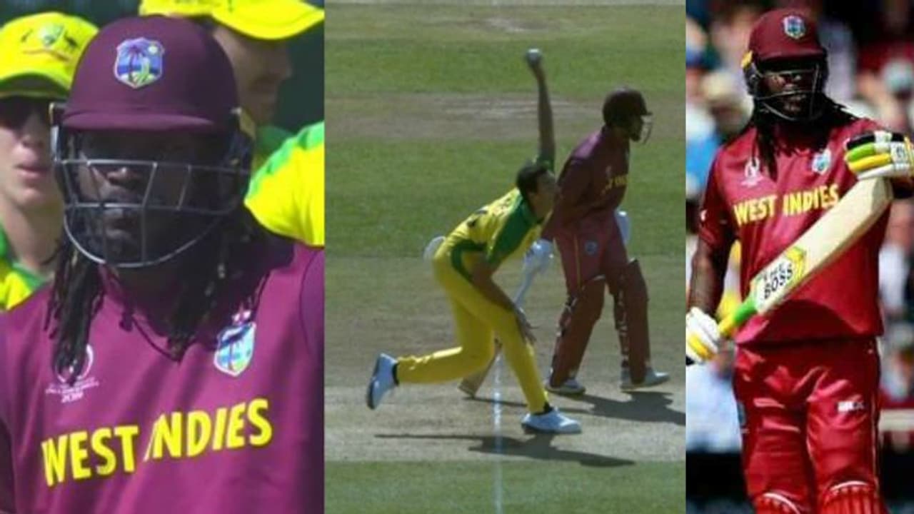 ஸ்டார்க் வீசிய மூன்றாவது ஓவரின் கடைசி பந்தில் அம்பயர் எல்பிடள்யூ கொடுக்க, அதிருப்தியடைந்த கெய்ல் சற்றும் யோசிக்காமல் ரிவியூ கேட்டார். தேர்டு அம்பயர் ஆராய்ந்ததில் பந்து ஸ்டம்பை மிஸ் செய்ததால் அவுட்டில்லை என்றானது. கெய்ல் களத்தில் நீடித்தார். அதன்பின்னர் அதிரடியாக ஆட ஆரம்பித்த கெய்ல், ஸ்டார்க் வீசிய 5வது ஓவரில் 21 ரன்களுக்கு ஆட்டமிழந்தார். கெய்ல் எல்பிடபிள்யூ ஆகி வெளியேறினார். இந்த எல்பிடபிள்யூவிற்கும் கெய்ல் ரிவியூ கேட்டார். பாதி பந்து ஸ்டம்பில் பட்டதால் அது அம்பயர் கால் என்பதால், கள நடுவரின் தீர்ப்புப்படி கெய்ல் வெளியேறினார்.