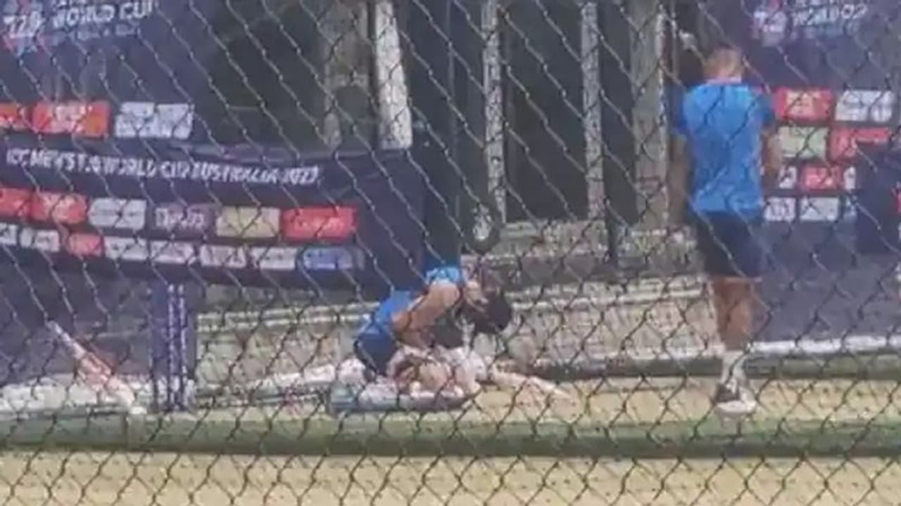 டி20 உலக கோப்பை அரையிறுதியில் நாளை இந்திய அணி இங்கிலாந்தை எதிர்கொள்ளவுள்ள நிலையில், பயிற்சியின்போது கோலிக்கு காயம் ஏற்படும் அபாயம் இருந்தது. நல்லவேளையாக எந்த பிரச்னையுமின்றி அவர் பயிற்சியை தொடர்ந்தார்.