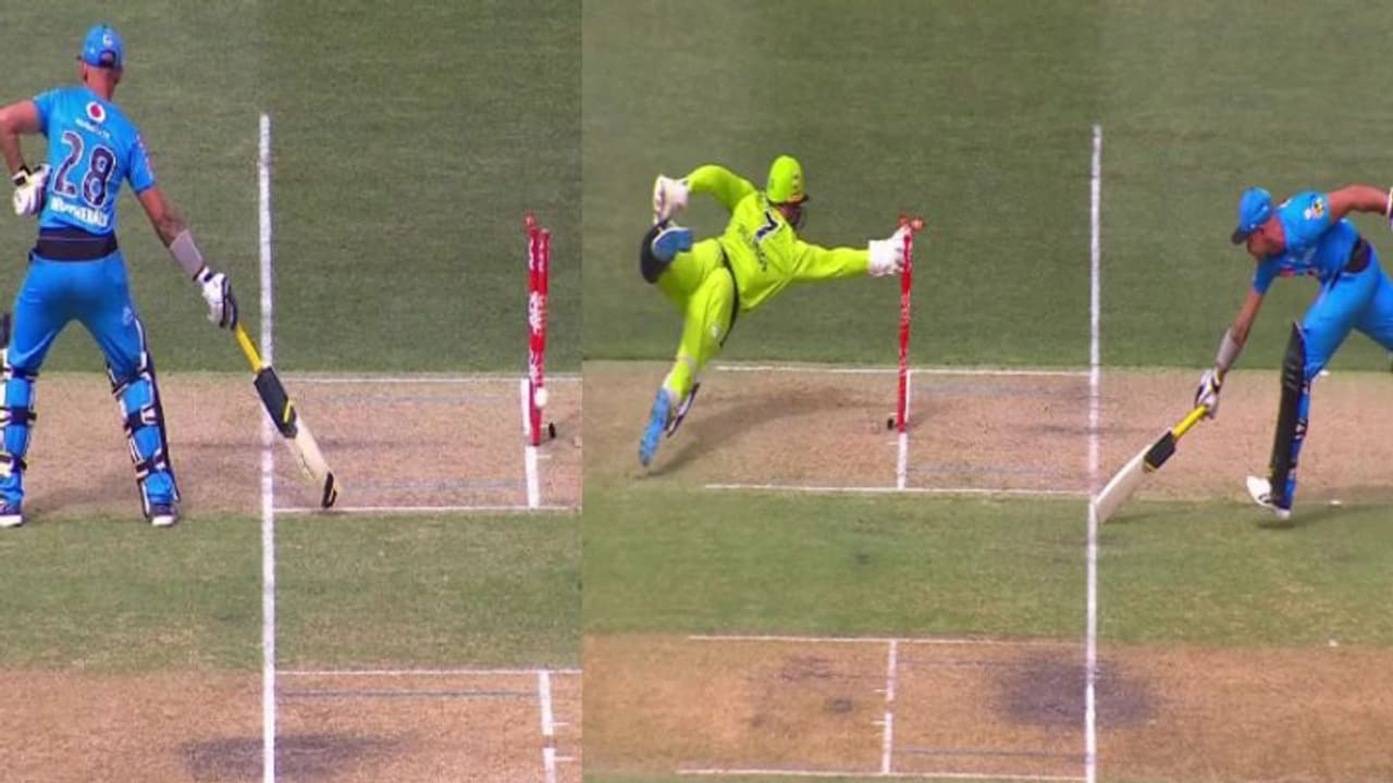 இந்த போட்டியில் அடிலெய்டு ஸ்டிரைக்கர்ஸ் வீரர் வெதரால்டு ஒரே பந்தில் 2 முனைகளிலும் ரன் அவுட்டானார். கிறிஸ் க்ரீன் வீசிய பந்தை ஃபிலிப் சால்ட் ஸ்டிரைட்டாக அடிக்க, அது கிரீனின் கையில் பட்டு ஸ்டம்ப்பில் அடித்தது. ஸ்டம்ப்பில் பந்து அடிக்கும்போது, வெதரால்டின் பேட் க்ரீஸுக்குள் இல்லை. அதற்கு க்ரீன் அப்பீல் செய்துகொண்டிருக்கையிலேயே, ஃபிலிப் சால்ட் அதற்கு ரன் ஓட, வெதரால்டும் வேறு வழியின்றி ஓடினார்.