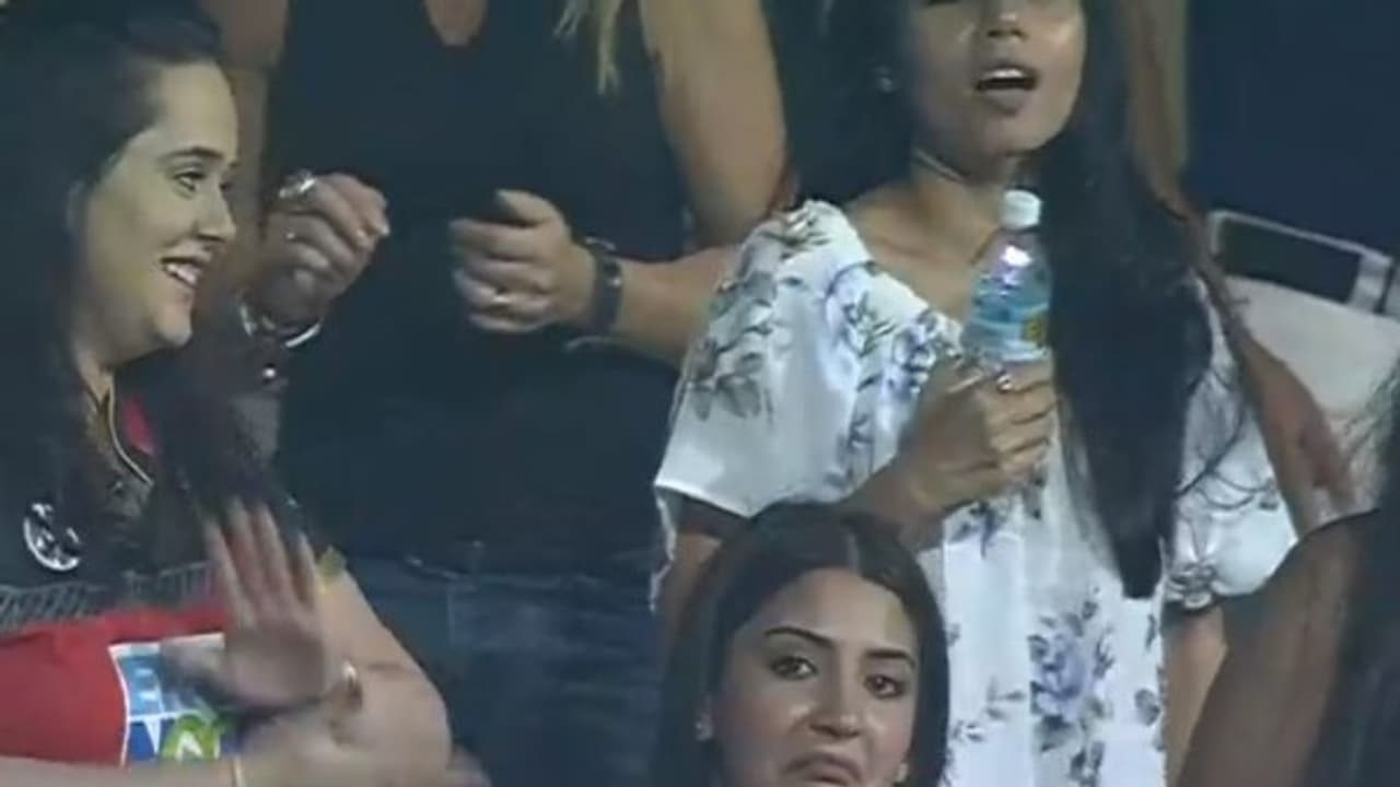 இப்போட்டியில் பெங்களூ அணியில் கோஹ்லியை தவிர மற்ற வீரர்களிடம் ஆக்ரோசமான ஆட்டத்தை பார்க்க முடியவில்லை. போட்டியின் 18.5 ஓவரின் போது தினேஷ் கார்த்திக் அடித்த பந்தை கோஹ்லி அபாரமாக கேட்ச் பிடித்து அசத்தினார். இந்த கேட்சைப் பார்த்த அனுஷ்கா சர்மா வியந்து பார்த்து கைதட்டி கோஹ்லியை உற்சாகப்படுத்தினார்.