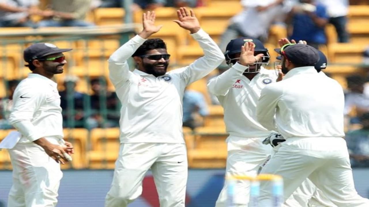 இந்தியத் தரப்பில் ஜடேஜா 63 ஓட்டங்களைக் கொடுத்து 6 விக்கெட் வீழ்த்தினார்.
