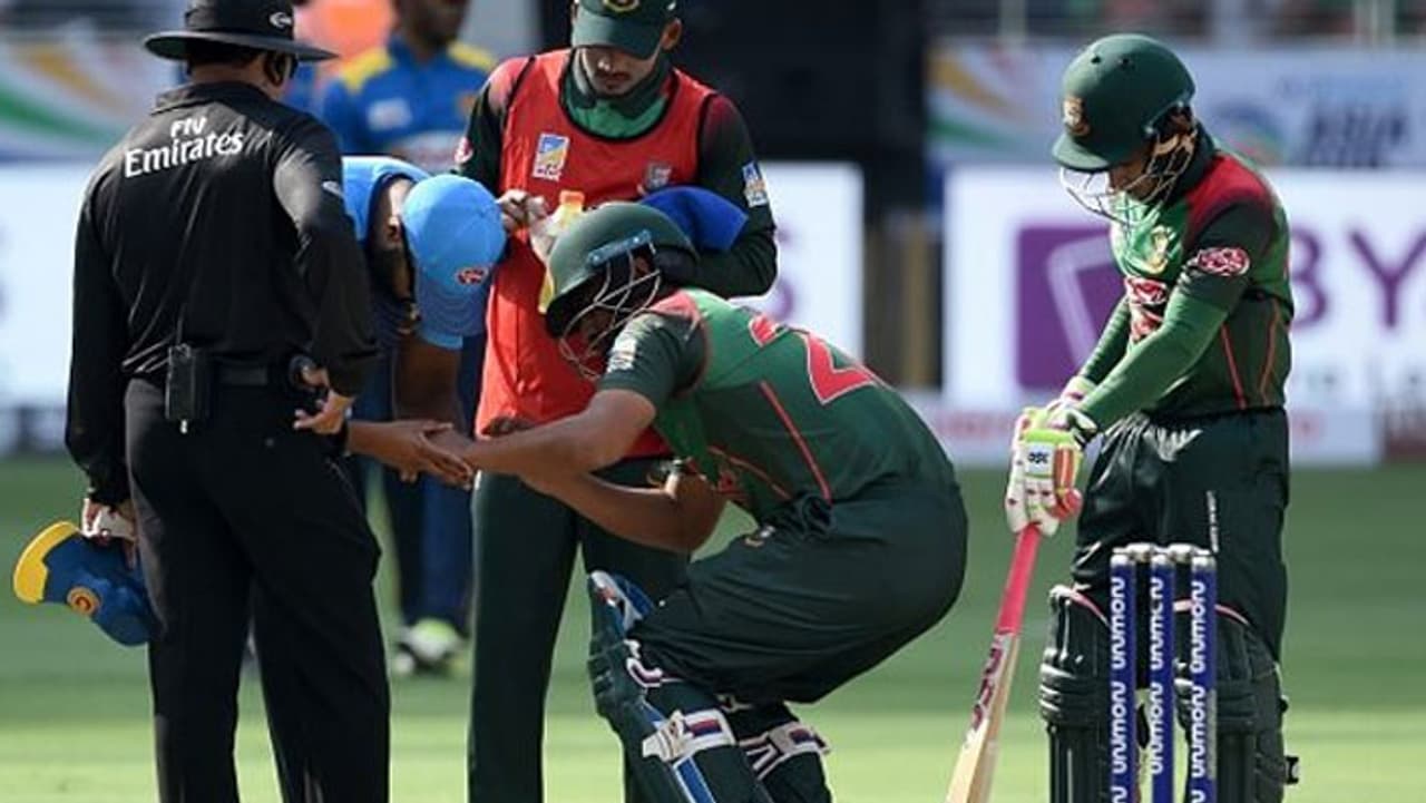 வங்கதேச அணியில் தொடக்க வீரர்களாக லிட்டன் தாஸ் மற்றும் தமிம் இக்பால் ஆகியோர் களமிறங்கினர். ஆட்டத்தின் 2 ஓவரை வீசிய சுரங்கா லக்மல் வீசினார். அப்போது பந்தை எதிர்கொண்ட தமிம் இக்பால் கையில் பந்து பலமாக தாக்கியது. வலியில் துடிதுடித்து நிலைக்குலைந்து போனார். பின்பு ரிட்டையர்டு ஹர்ட் முறையில் பெவிலியன் திரும்பினார்.