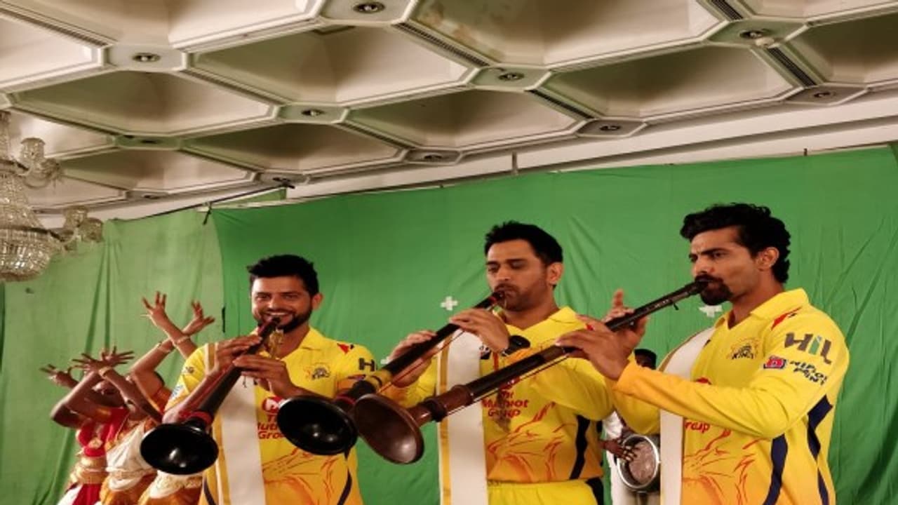 அதேபோல், தோனி, ரெய்னா, ஜடேஜா ஆகியோர் நாதஸ்வரம் வாசிப்பது போல் போஸ் கொடுத்த போட்டோவும் வைரலாக பரவிவருகிறது. சென்னை வீரர்கள், பயிற்சி மேற்கொள்வதுடன் ஆட்டம், பாட்டத்துடன் கொண்டாட்டமாக உள்ளனர்.