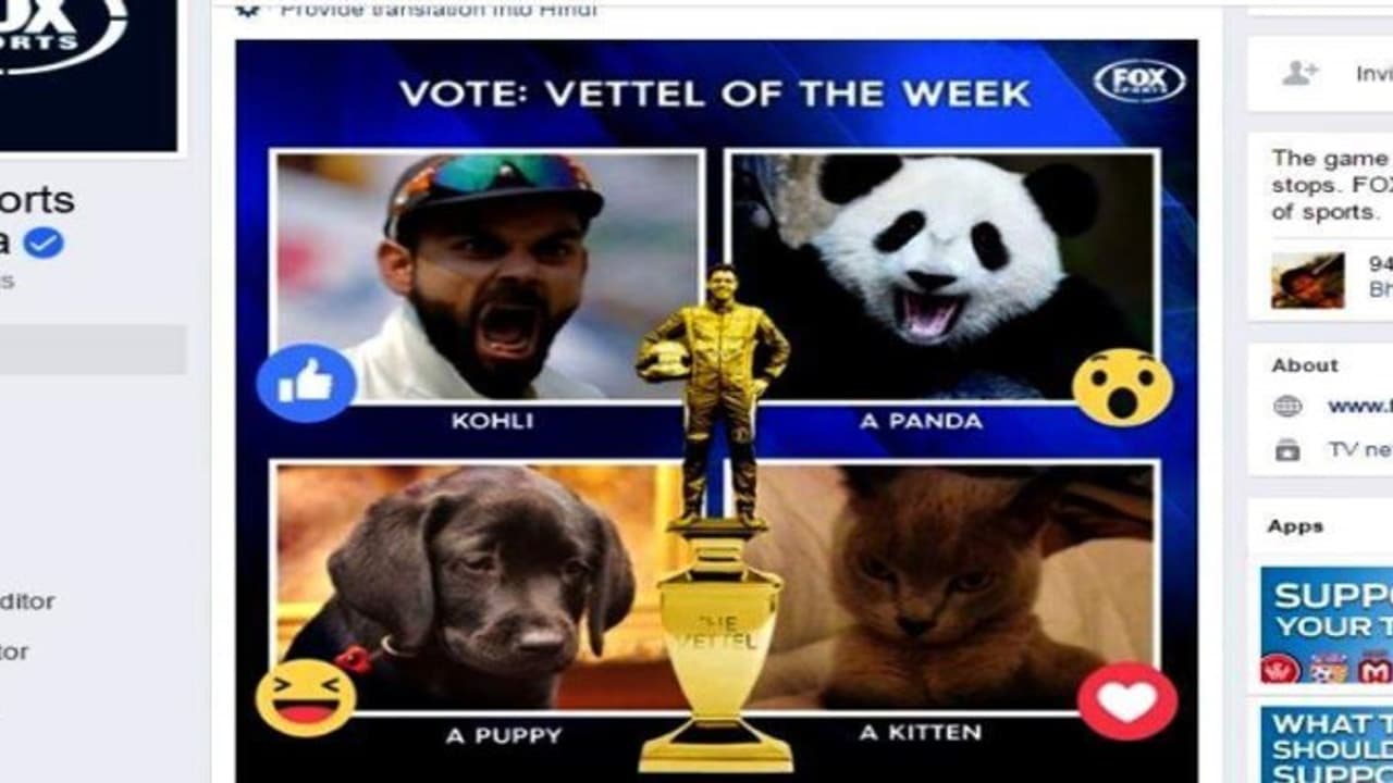 நாய், பூனை, கரடி போன்ற விலங்குகளின் வரிசையில் வீராட் கோலி புகைப்படத்தைப் போட்டு ஆஸ்திரேலிய ஊடகம் கருத்துக்கணிப்பு நடத்தி அடாவடியில் ஈடுபட்டுள்ளது.