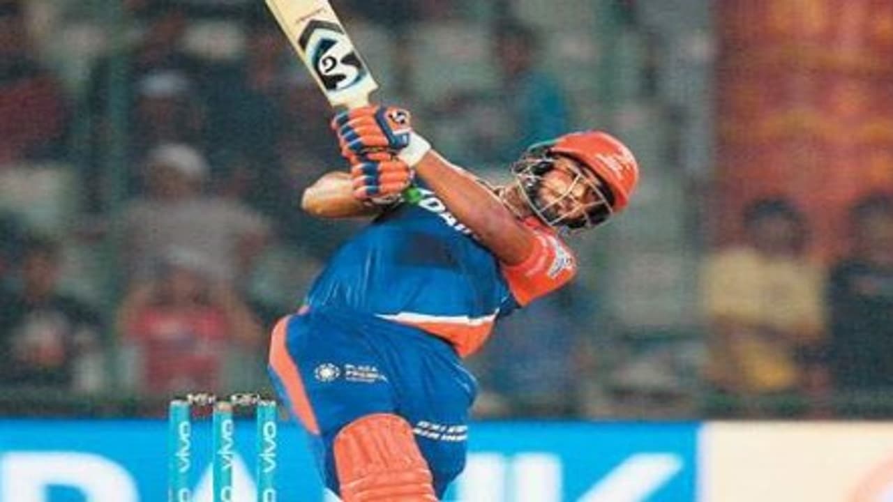 பேட் செய்த டெல்லி அணியில் கேப்டன் கருண் நாயர் 12 ஓட்டங்களில் வெளியேற, சஞ்சு சாம்சனுடன் இணைந்தார் ரிஷப் பந்த். அவர் வந்த வேகத்தில் சிக்ஸரை விளாச, அதிரடி ஆரம்பமானது.