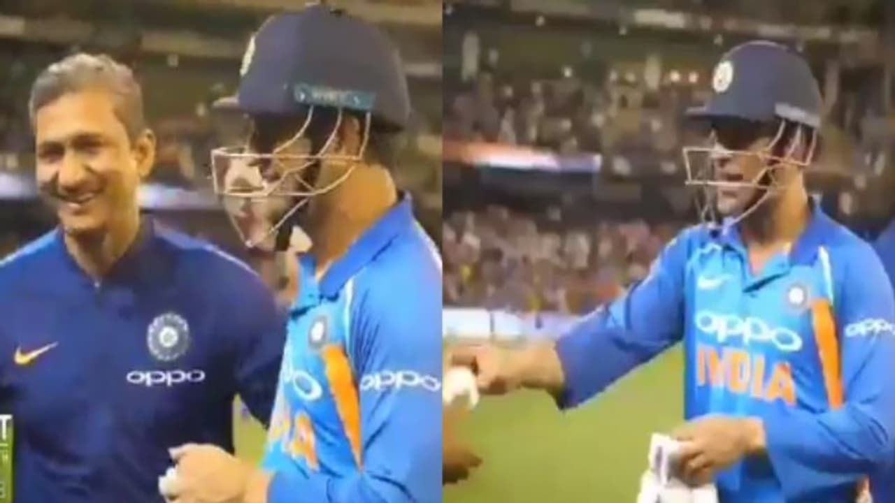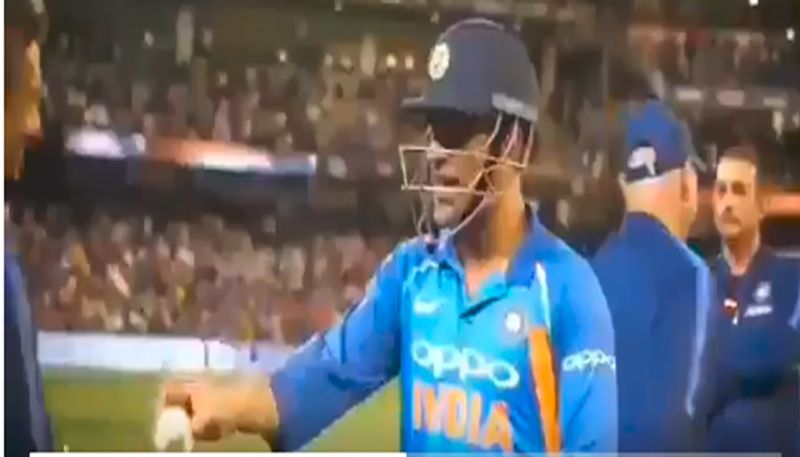 மெல்போர்னில் நடந்த கடைசி ஒருநாள் போட்டியில் கடைசி வரை ஆட்டமிழக்காமல் களத்தில் நின்று இந்திய அணியை வெற்றி பெற செய்த தோனி, போட்டி முடிந்ததும் பந்தை கையில் எடுத்து சென்றார். எதிரணி வீரர்கள், சக வீரர்கள் மற்றும் பயிற்சியாளர்கள், அணி நிர்வாகத்தினர் ஆகியோருடன் கை குலுக்கிக்கொண்டு வந்தார் தோனி.