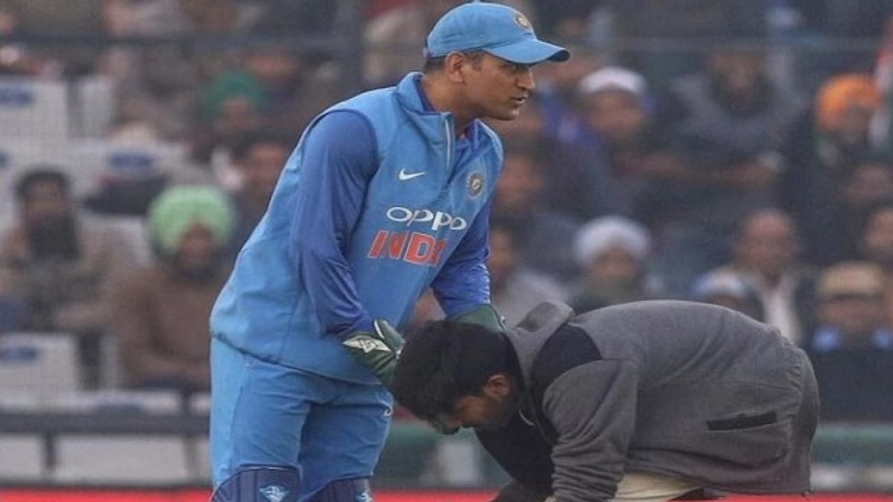 அதன்பிறகு, இலங்கை அணி பேட்டிங் செய்தது. இந்திய அணி ஃபீல்டிங் செய்துகொண்டிருந்தபோது, பாதுகாப்பு கெடுபிடிகளை மீறி, ரசிகர் ஒருவர் மைதானத்துக்குள் நுழைந்துவிட்டார். அவரைத் தடுத்து நிறுத்துவதற்காக பாதுகாவலர் ஒருவர் பின்தொடர்ந்து ஓடிவந்தார். ஆனால், அவரைவிட வேகமாக ஓடிவந்த அந்த ரசிகர், கீப்பிங் செய்துகொண்டிருந்த தோனியை நோக்கி ஓடினார். தோனியிடம் சென்று அவரது காலைத் தொட்ட பின்னரே, அந்த ரசிகரின் ஓட்டம் நின்றது. காலில் விழ முயன்ற ரசிகரை தோனி தடுத்து நிறுத்த முயன்றார். ஆனால் அதையும் மீறி அந்த ரசிகர் தோனியின் காலில் விழுந்தார். இதையடுத்து ரசிகரைத் துரத்தி வந்த பாதுகாவலர், மைதானத்துக்கு வெளியில் அவரை அழைத்துச்சென்றார்.