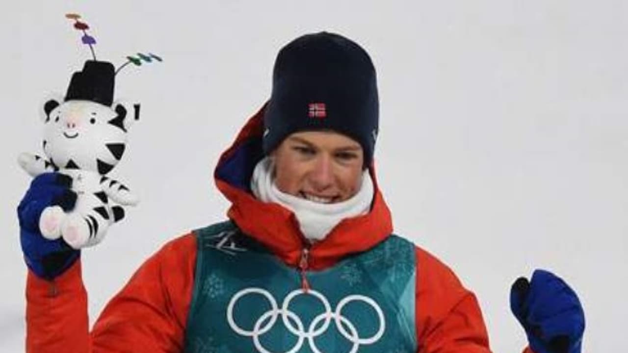 கிராஸ் கன்ட்ரி ஸ்கீயிங் ஆடவர் பிரிவு இறுதிப் போட்டியில் முதலிடம் வந்த நார்வே வீரர் ஜோஹன்னஸ் ஹோஸ்ஃப்டோட்.பியோங்சாங் ஒலிம்பிக்கின் சின்னமான 'வெள்ளைப் புலி'யை கையில் ஏந்தி மகிழ்ச்சி அடைந்தார்.