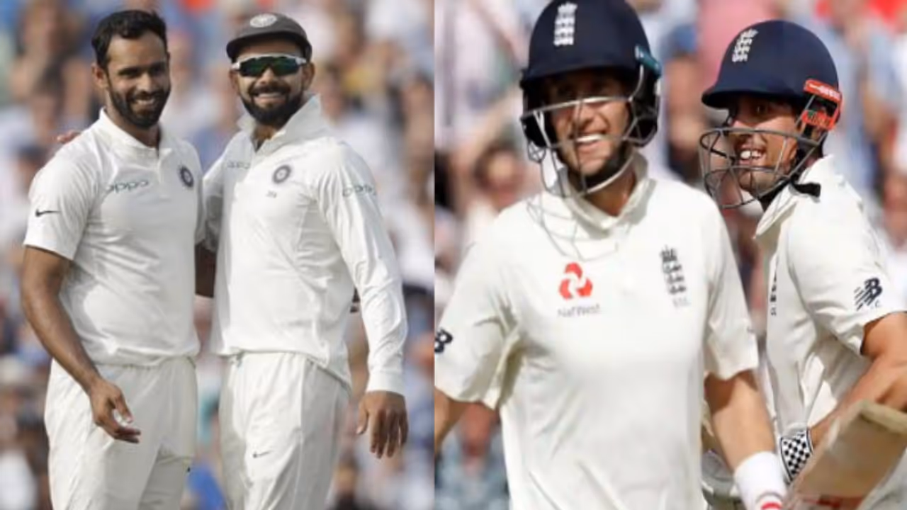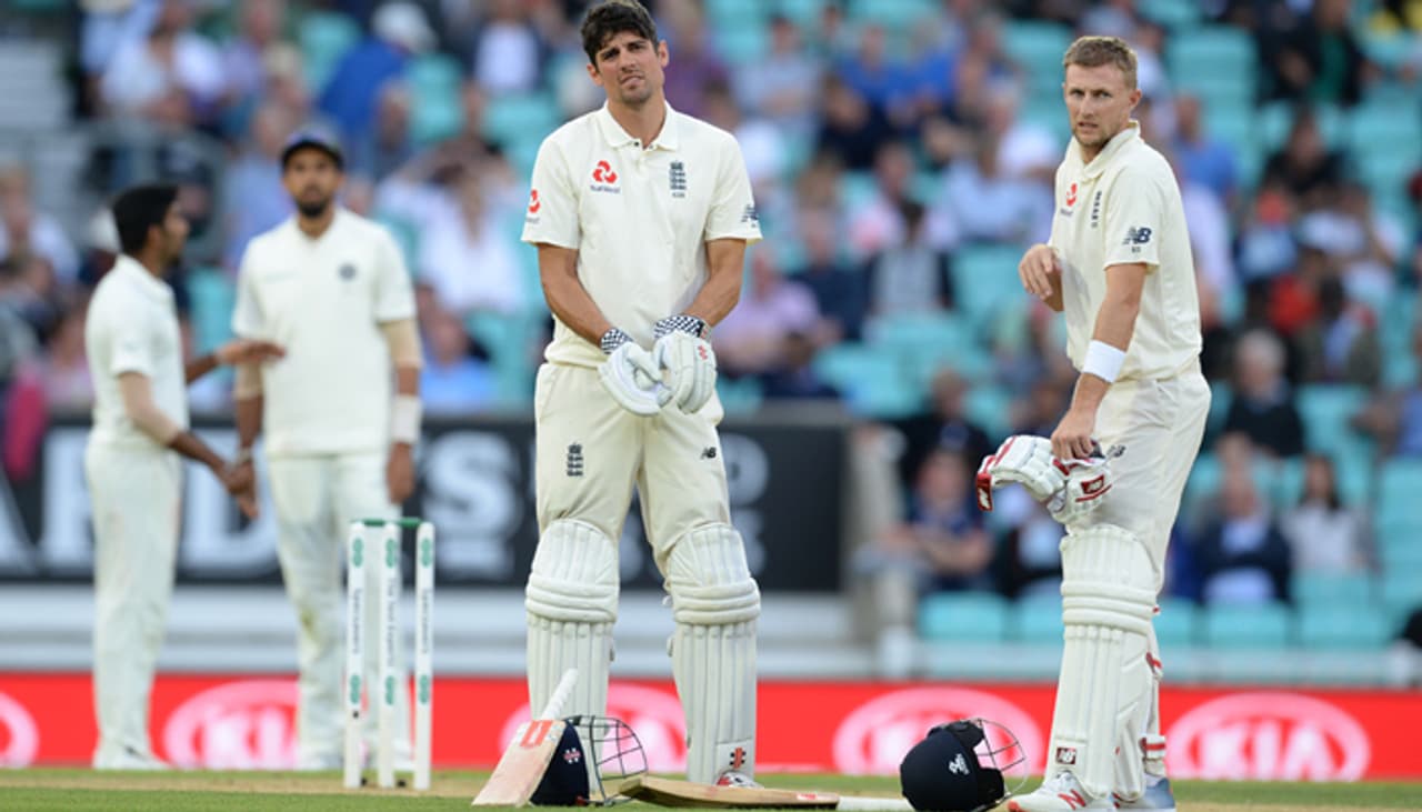 பும்ரா, ஷமி, இஷாந்த் சர்மா, ஜடேஜா ஆகியோரால் பிரிக்க முடியாத இந்த ஜோடியை அறிமுக வீரர் ஹனுமா விஹாரி பிரித்தார். 125 ரன்கள் எடுத்து களத்தில் நங்கூரமிட்ட ஜோ ரூட்டை, விஹாரி வீழ்த்தினார். ரூட் அவுட்டானதற்கு அடுத்த பந்திலேயே அலெஸ்டர் குக்கும் அவுட்டானார். 147 ரன்கள் குவித்திருந்த அலெஸ்டர் குக், விக்கெட் கீப்பரிடம் கேட்ச் கொடுத்து அவுட்டானார்.