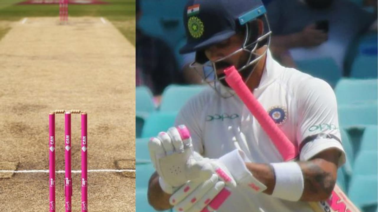 இதுதான் சிட்னி டெஸ்ட் போட்டி பிங்க் டெஸ்ட் என்று அழைக்கப்பட காரணம். இந்த போட்டியில் ஸ்டம்புகள், பவுண்டரி லைன், ஸ்டேடியம் பேனர்கள் என அனைத்துமே பிங்க் நிறத்தில் இருக்கும். இதற்கு ஆதரவு தெரிவிக்கும் விதமாக இந்திய அணியின் கேப்டன் கோலி தனது பேட்டின் கைப்பிடியை பிங்க் நிறத்தில் மாட்டி வந்ததோடு குளௌசும் பிங்க் நிறத்திலே அணிந்திருந்தார்.