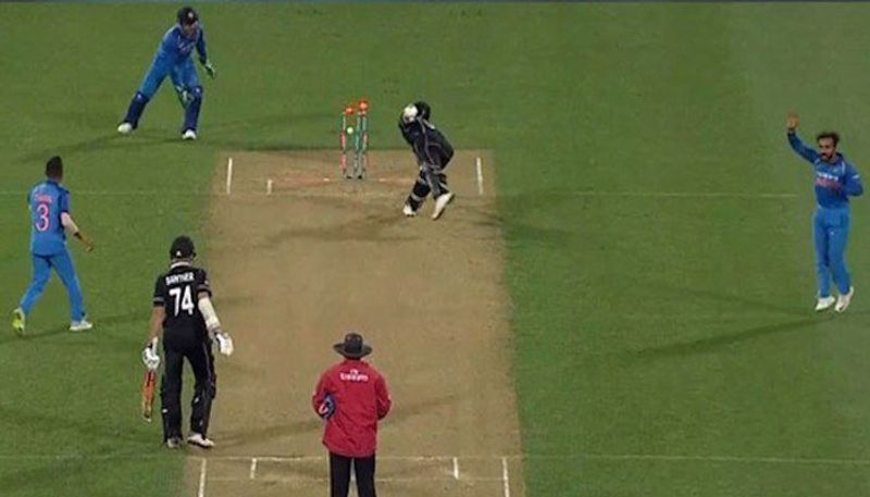 மெயின் விக்கெட்டுகளை வீழ்த்திவிட்ட போதிலும் பின்வரிசையில் இறங்கிய ஜேம்ஸ் நீஷம், அதிரடியாக ஆடி பவுண்டரியும் சிக்ஸர்களுமாக விளாசி இந்திய அணியை அச்சுறுத்தினார். அவரை வீழ்த்த பவுலர்கள் திணறிய நிலையில், தனது சமயோசித புத்தியால் அவரை அபாரமான ரன் அவுட் மூலம் வெளியேற்றினார் தோனி. தோனியின் விக்கெட் கீப்பிங் திறமையை ரசிகர்கள் சமூக வலைதளங்களில் புகழ்ந்து தள்ளி கொண்டிருக்கின்றனர்.