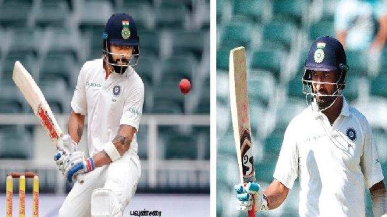 அடுத்து வந்த கேப்டன் கோலி, புஜாராவுடன் இணைந்தார். இந்த ஜோடி விக்கெட் சரிவை தடுத்து அணியின் ஸ்கோரை சற்று உயர்த்தியது.