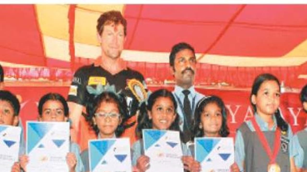 அதனைத் தொடர்ந்து பல்வேறு விளையாட்டுப் போட்டிகளில் சாதனை படைத்த மாணவ, மாணவிகளுக்கு பாராட்டுச் சான்றிதழ்களை அவர் வழங்கினார். பின்னர் ஜான்டி ரோட்ஸ்-க்கு நினைவுப் பரிசாக வெள்ளி வீரவாள் வழங்கப்பட்டது.
