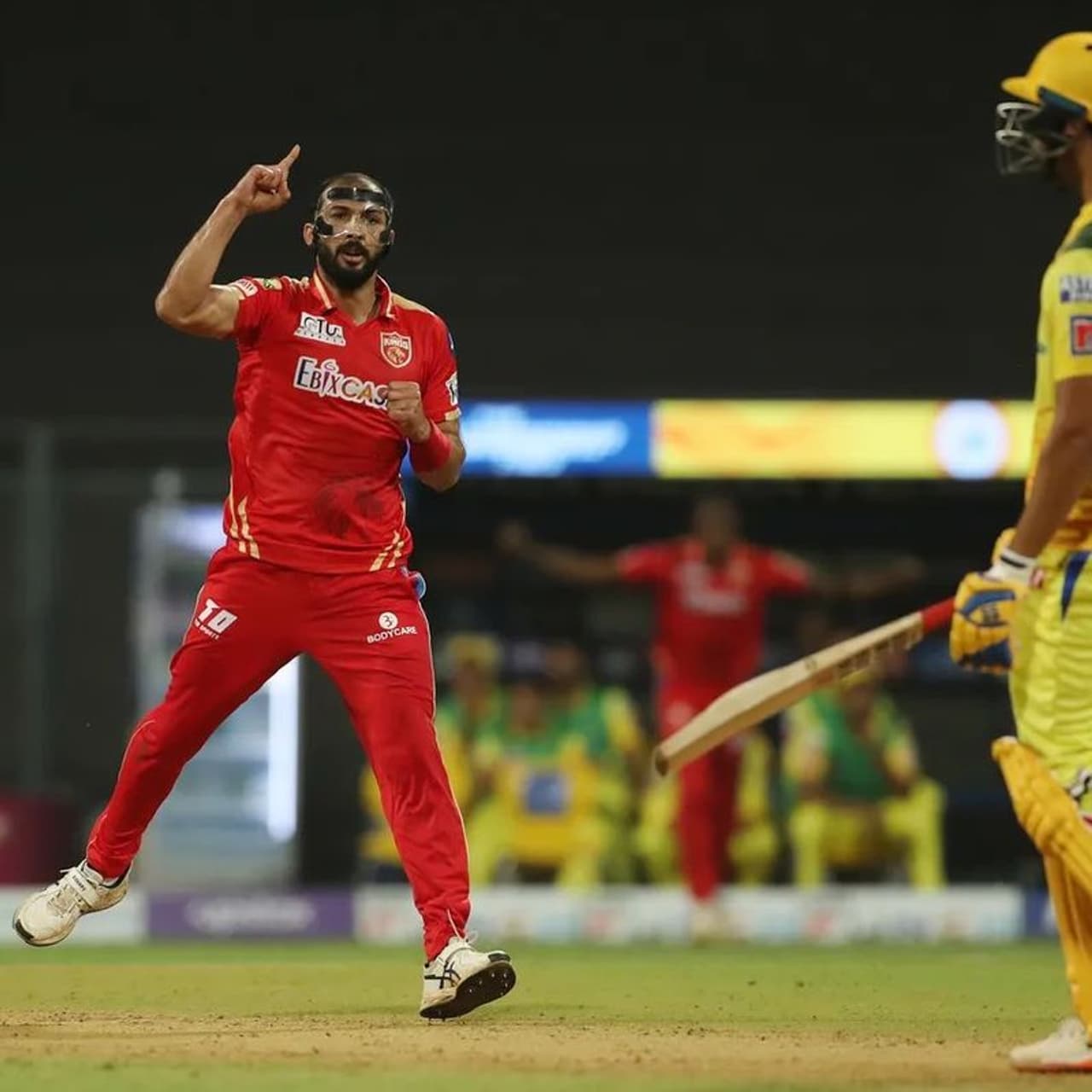 மும்பையில் நேற்று நடந்த ஐபிஎல் டி20 போட்டியின் லீக் ஆட்டத்தில் சிஎஸ்கே அணிக்கு எதிராக சிறப்பாகப் பந்துவீசிய பஞ்சாப் கிங்ஸ் வேகப்பந்துவீச்சாளர் ரிஷி தவண் முகத்தில் அணிந்திருந்த ஃபேஸ் ஷீல்ட்தான் தற்போது சமூக ஊடகங்களில் பரவலாகப் பேசப்பட்டு வருகிறது.