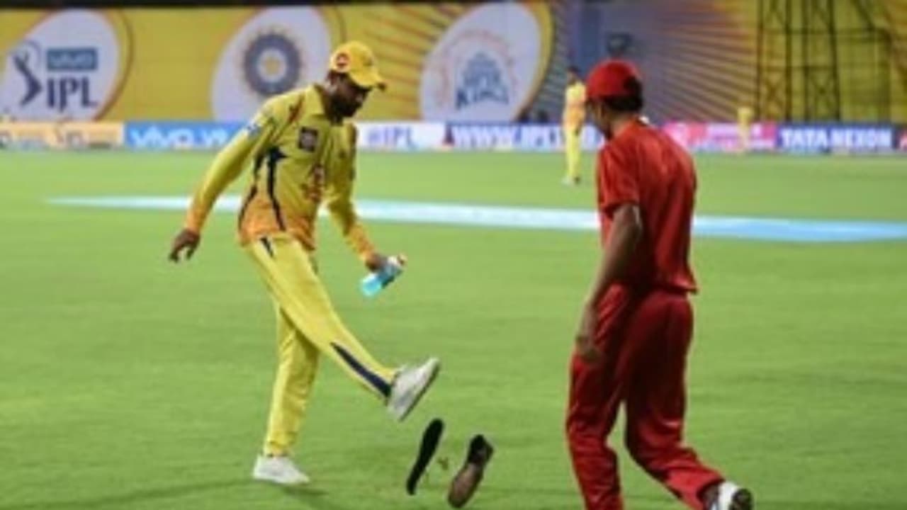 நாம் தமிழர் கட்சியினர் வீசிய காலணிகள் சென்னை அணியின் வீரர் ஜடேஜா அருகே விழுந்தது.இதையடுத்து ஜடேஜா அந்த காலணியைக் கொண்டு சில நொடிகள் கால் பந்து விளையாடினார்.