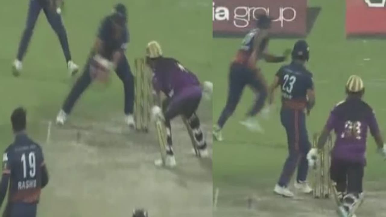 பஞ்சாபி லெஜண்ட்ஸ் அணியில் பாகிஸ்தானின் உமர் அக்மலும் அவரது அண்ணன் கம்ரான் அக்மல் மராத்தா அரேபியன்ஸ் அணியிலும் ஆடிவருகின்றனர். இந்த போட்டியில் பஞ்சாபி லெஜண்ட்ஸ் அணியின் பேட்டிங்கின்போது 8வது ஓவரை ரஷீத் கான் வீசினார். அந்த ஓவரின் 5வது பந்தை உமர் அக்மல் இறங்கிவந்து அடிக்கமுயன்றார். ஆனால் ரஷீத் கான் ஆஃப் திசையில் விலக்கி வீசியதால் அந்த பந்தை அவரால் அடிக்க முடியாமல் விட்டார். அந்த பந்தை பிடித்து எளிமையாக உமர் அக்மலை ஸ்டம்பிங் செய்திருக்கலாம். ஆனால் அந்த பந்தை அலட்சியமாக பிடிக்க முயன்று விட்டுவிட்டார் விக்கெட் கீப்பர் கம்ரான் அக்மல்.