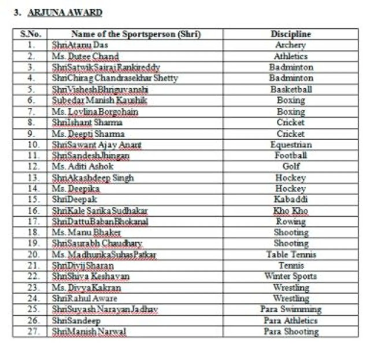 அர்ஜூனா விருது வென்ற விளையாட்டு வீரர்கள்: