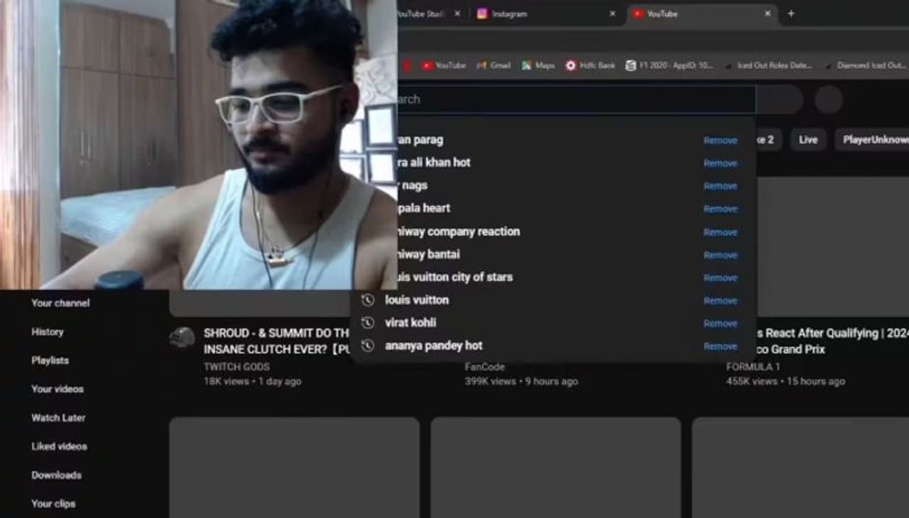 அப்போது தான் அந்த லைவ் ஸ்ட்ரீம், ஒரு சர்ச்சை ஸ்ட்ரீம் என்ற நிலைக்கு மாறியுள்ளது. YouTube தலத்தில், இலவச மியூசிக் தேட அவர் தொடங்கியபோது, அவர் ஏற்கனவே தேடியிருந்த சில விஷயங்கள் அப்பட்டமாக அந்த லைவ் ஸ்ட்ரீமில் தெரியவந்துள்ளது. அதில் Ananya Pandey Hot மற்றும் Sara Ali Khan Hot போன்ற விஷயங்களை தேடியது அம்பலமானது.