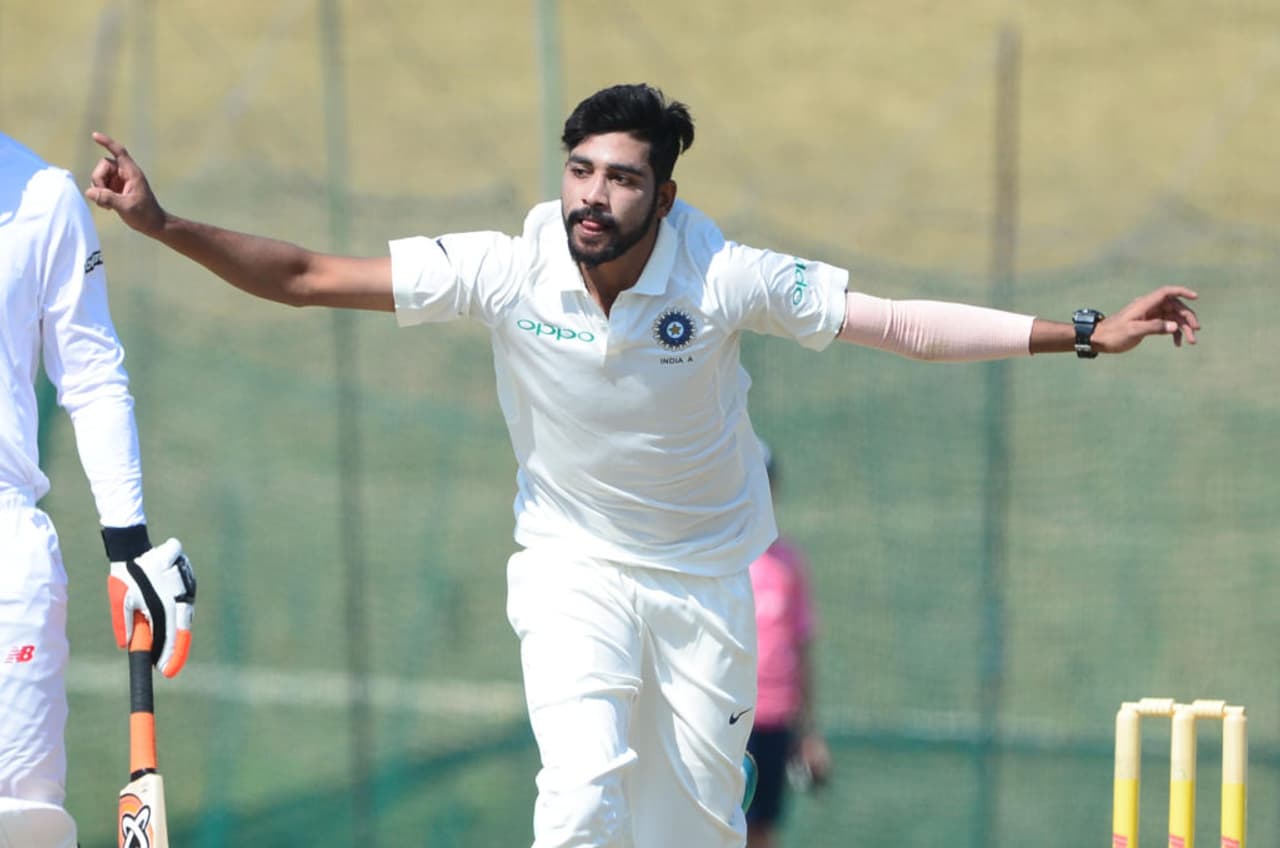 ஆஸ்திரேலியா ஏ அணிக்கு எதிரான அதிகாரப்பூர்வமற்ற டெஸ்ட் போட்டியில், அந்த அணியின் பேட்டிங் வரிசையை சரித்தார் சிராஜ்.