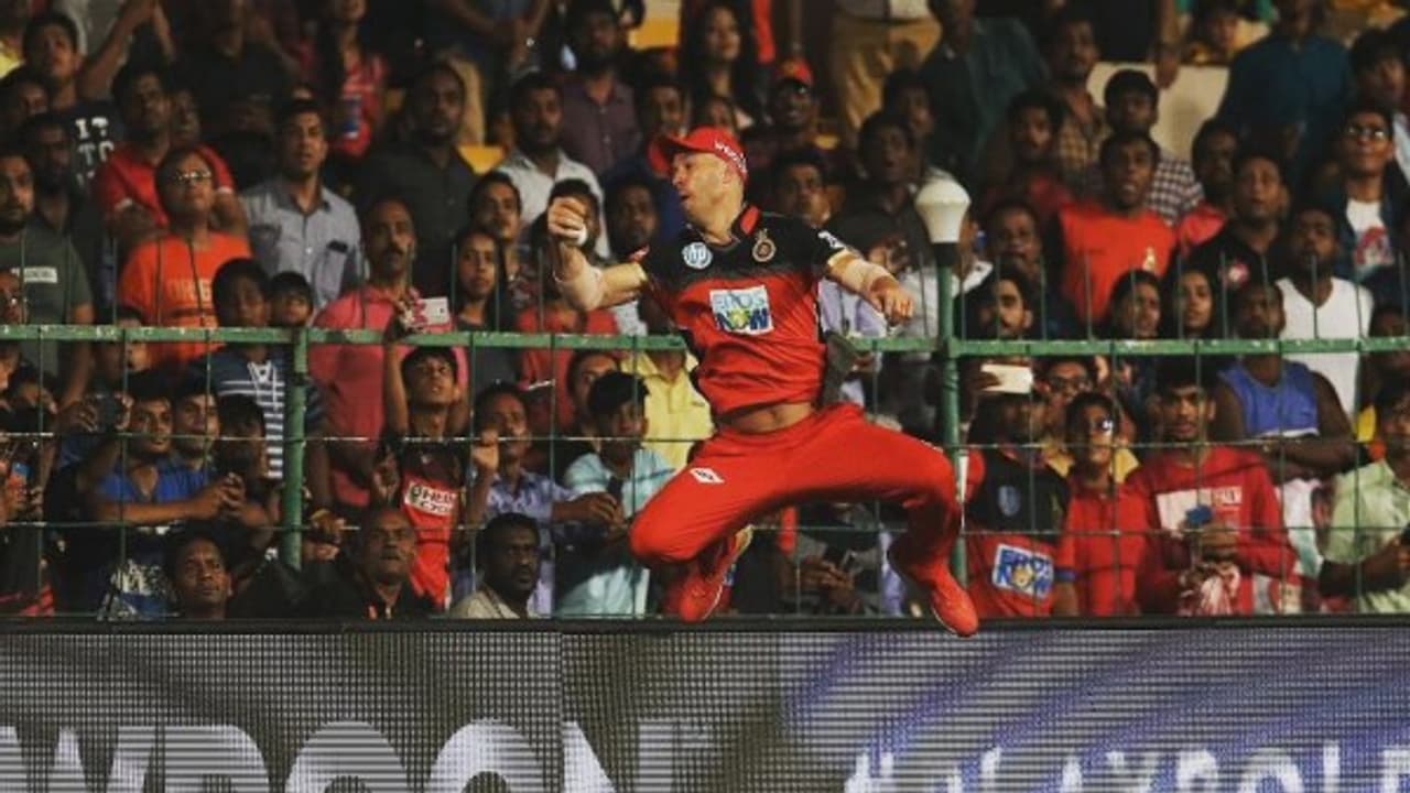 இந்த ஆட்டத்தில், ஐதராபாத் அணி தொடக்க வீரர் அலெக்ஸ் ஹால்ஸ் அடித்த பந்தை எல்லை கோர்ட்டில் நின்ற டிவில்லியர்ஸ் பாய்ந்து ஒரு கையில் கேட்ச் பிடித்து பிரமிக்க வைத்தார்.
