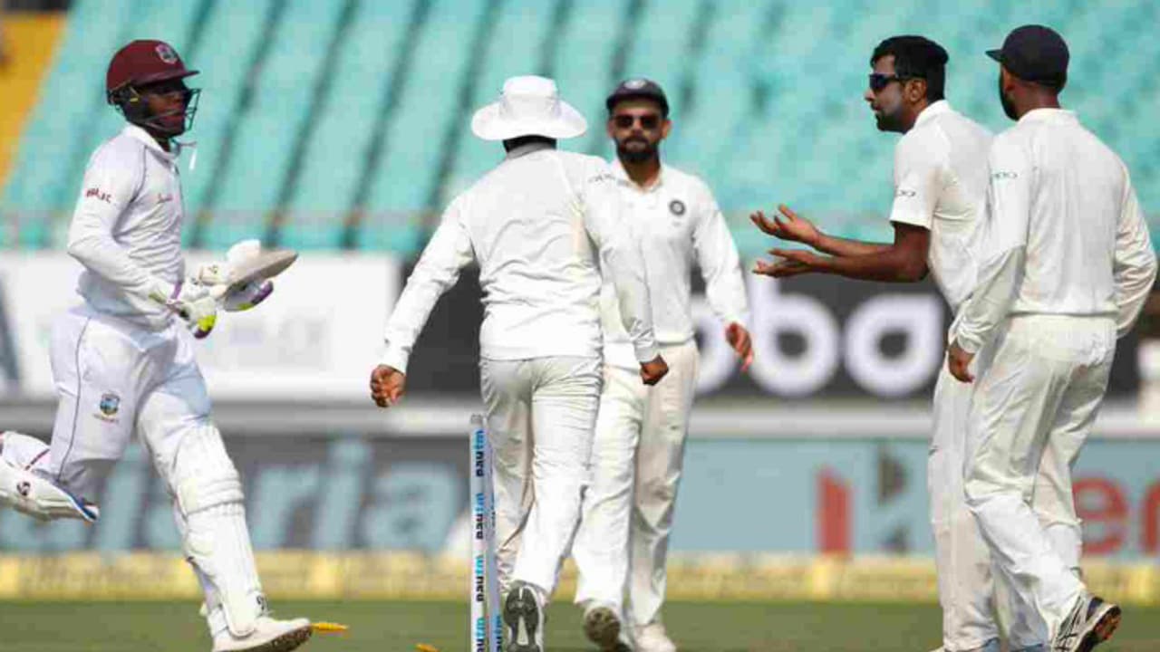 இந்தியா வெஸ்ட் இண்டீஸ் அணிகளுக்கு இடையேயான முதல் டெஸ்ட் போட்டியின் முதல் இன்னிங்ஸில் அடுத்தடுத்து விக்கெட்டுகளை இழந்து வெஸ்ட் இண்டீஸ் அணி திணறிவருகிறது.