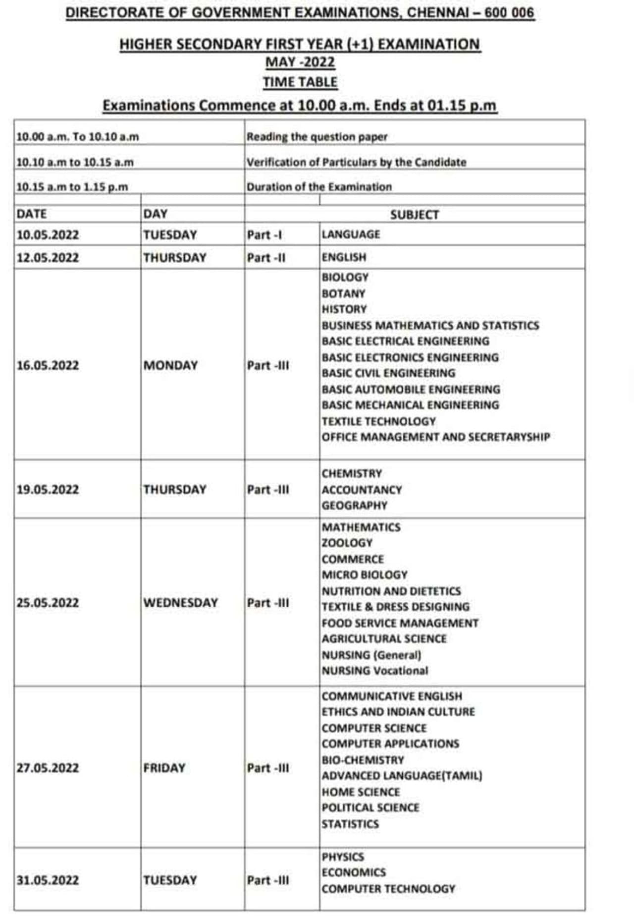 11ம் வகுப்புகளுக்கான பொதுத்தேர்வு நடைபெறும் தேதி காலை அறிவிக்கப்பட்ட நிலையில் தற்போது தேர்வு தொடர்பான அட்டவணையை தமிழக அரசு வெளியிட்டுள்ளது.