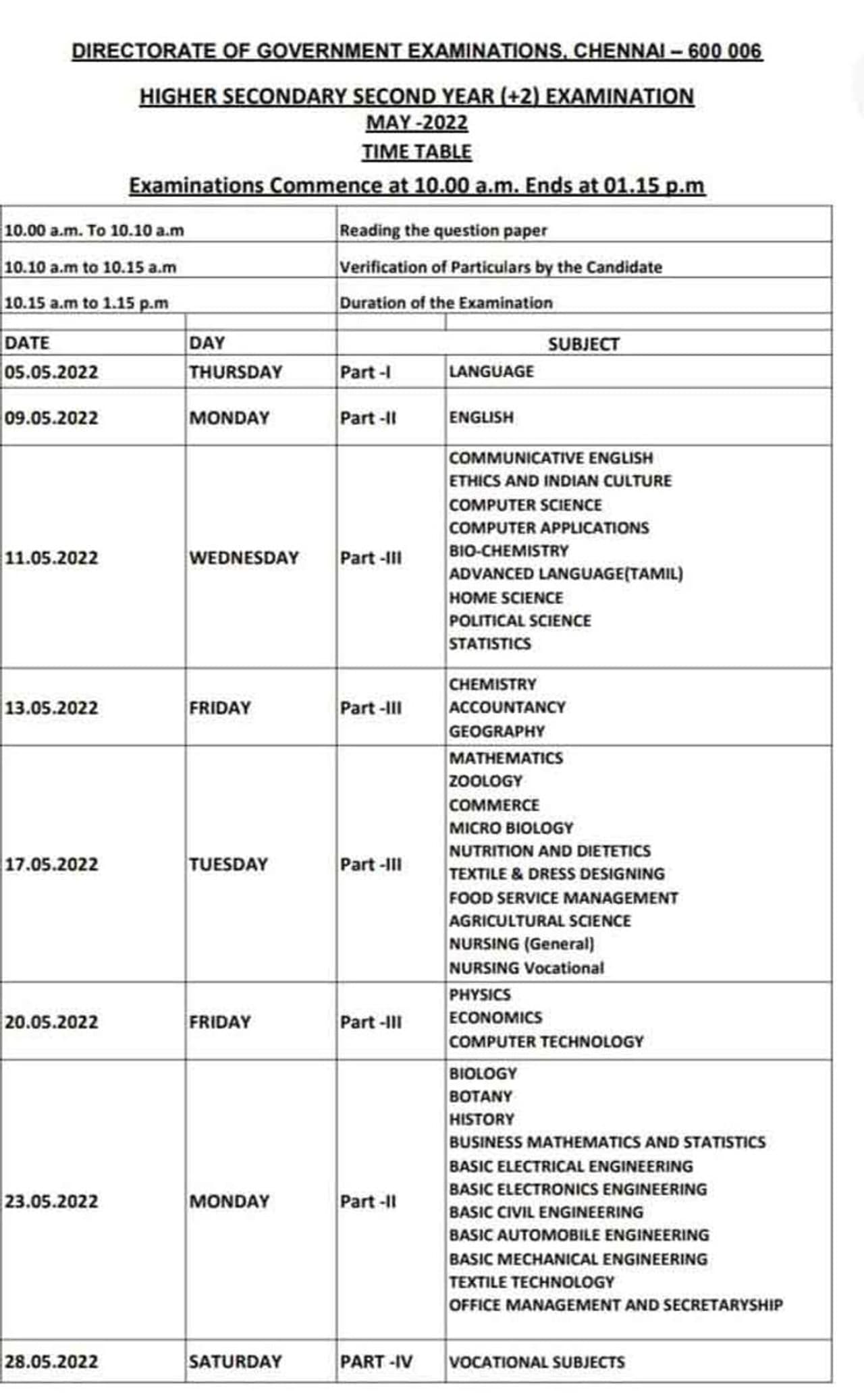 12ம் வகுப்பு பொதுத்தேர்வு கால அட்டவணை விவரம்