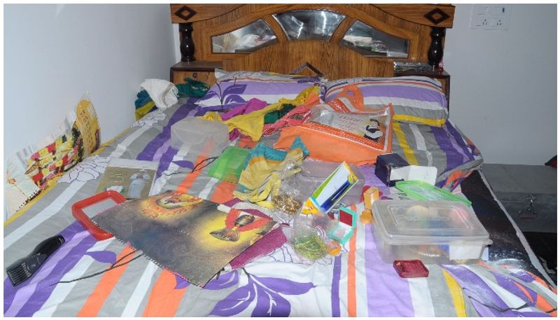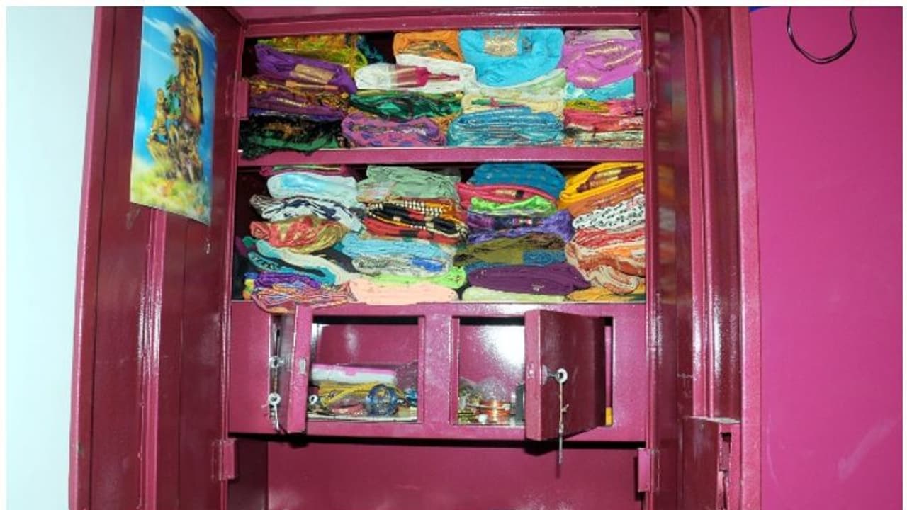 இரவு வீட்டிற்கு திரும்பிய போது வீட்டின் முன்பக்க கதவை கடப்பாறையால் உடைத்து மர்ம நபர்கள் உள்ளே புகுந்து பீரோவில் வைத்திருந்த 22 சவரன் தங்க நகையும், ஒரு கிலோ வெள்ளியும், ரூ. 30 ஆயிரம் ரொக்கப் பணத்தையும் கொள்ளையடித்துச் சென்றனர்.