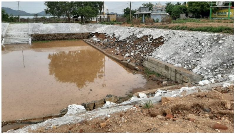 கடந்த 3 மாதத்துக்கு முன் ரூ.20 லட்சம் செலவில் சீரமைக்கப்பட்ட குளம், ஒரு நாள் மழைக்கே கற்கள் பெயர்ந்து சரிந்து விழுந்தது. இதனால் பொதுமக்கள் அதிர்ச்சியடைந்துள்ளனர். தரமாக பணிகளை செய்யவில்லை என குற்றஞ்சாட்டுகின்றனர்.