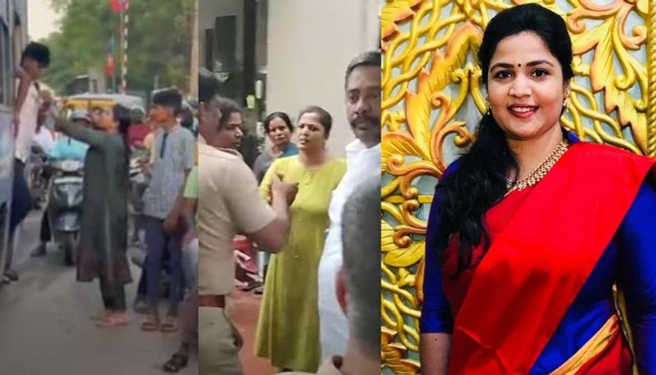 மாநகர பேருந்து படிக்கெட்டில் தொங்கியபடி பயணம் செய்த மாணவர்களை தாக்கிய வழக்கில் கைது செய்யப்பட்ட ரஞ்சனா நாச்சியாருக்கு நிபந்தனை ஜாமீன் வழங்கப்பட்ட அவருக்கு பாஜகவினர் கற்பூரம் ஏற்றி ஆரத்தி எடுத்தனர்.