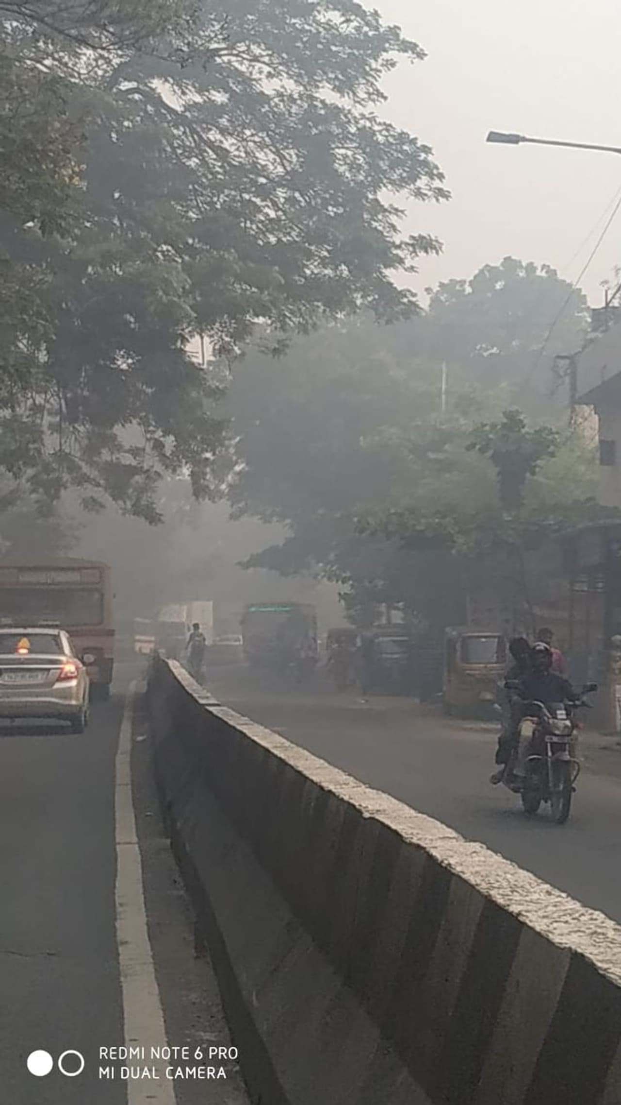 தற்போது மார்கழி மாதம் நடைபெற்று வரும் நிலையில், மார்கழி பனியையும் விஞ்சும் அளவிற்கு புகை மண்டலம் சூழ்ந்துள்ளது. வேளச்சேரி, கிண்டி, திருவான்மியூர், அண்ணா சாலை, தாம்பரம் என நகரின் பல்வேறு இடங்களிலும் புகை சூழ்ந்து காணப்படுகிறது. சாலைகளில் எதிரே வரும் வாகனங்கள் தெரியாத அளவிற்கு புகை இருக்கிறது. இதன்காரணமாக சென்னையில் தற்போது காற்று மாசு அதிகரித்துள்ளது. சாதாரணமாக 50ல் இருந்து 100 குறியீடுக்குள் இருந்தால் மட்டுமே காற்று சுவாசிக்க ஏதுவானதாக கூறப்படுகிறது.