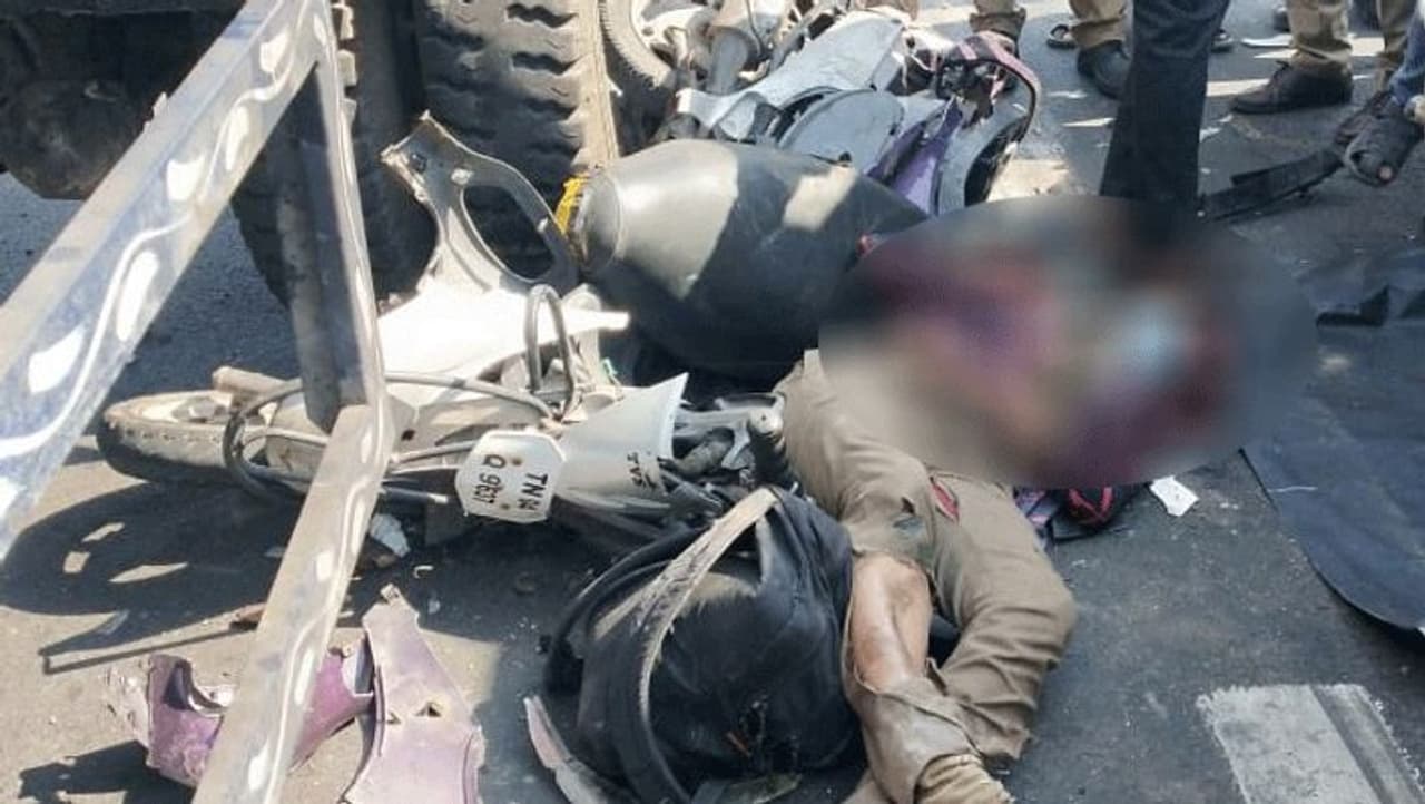 சென்னை மெரினாவில் இருசக்கர வாகனத்தில் சென்றிக்கொண்டிருந்த பெண் காவலர் மீது லாரி மோதி விபத்துக்குள்ளானது. இந்த விபத்தில் அந்த பெண் காவலர் சம்பவ இடத்திலேயே தலை நசுங்கி பரிதாபமாக உயிரிழந்தார்.