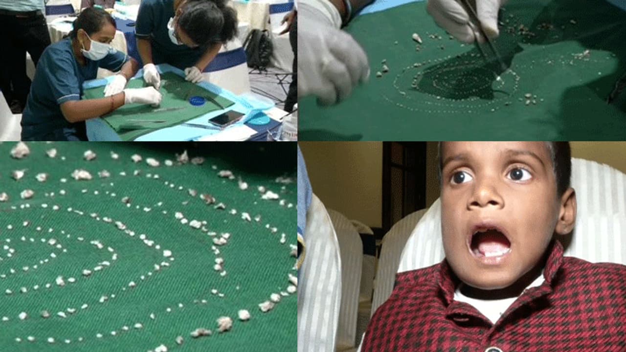 அப்போது, எக்ஸ்ரே, சிடி ஸ்கேன் எடுத்து பார்த்தபோது, சிறுவனின் கீழ் தாடையில், கண்ணுக்கு தெரியாத அளவில் பற்கள் குவியலாக இருப்பது கண்டு பிடிக்கப்பட்டது. இதனையடுத்து, சுமார் 5 மணி நேரம் அறுவை சிகிச்சை செய்து அவனது வாயிலிருந்த 526 பற்களையும் அகற்றி சாதனை புரிந்துள்ளனர்.