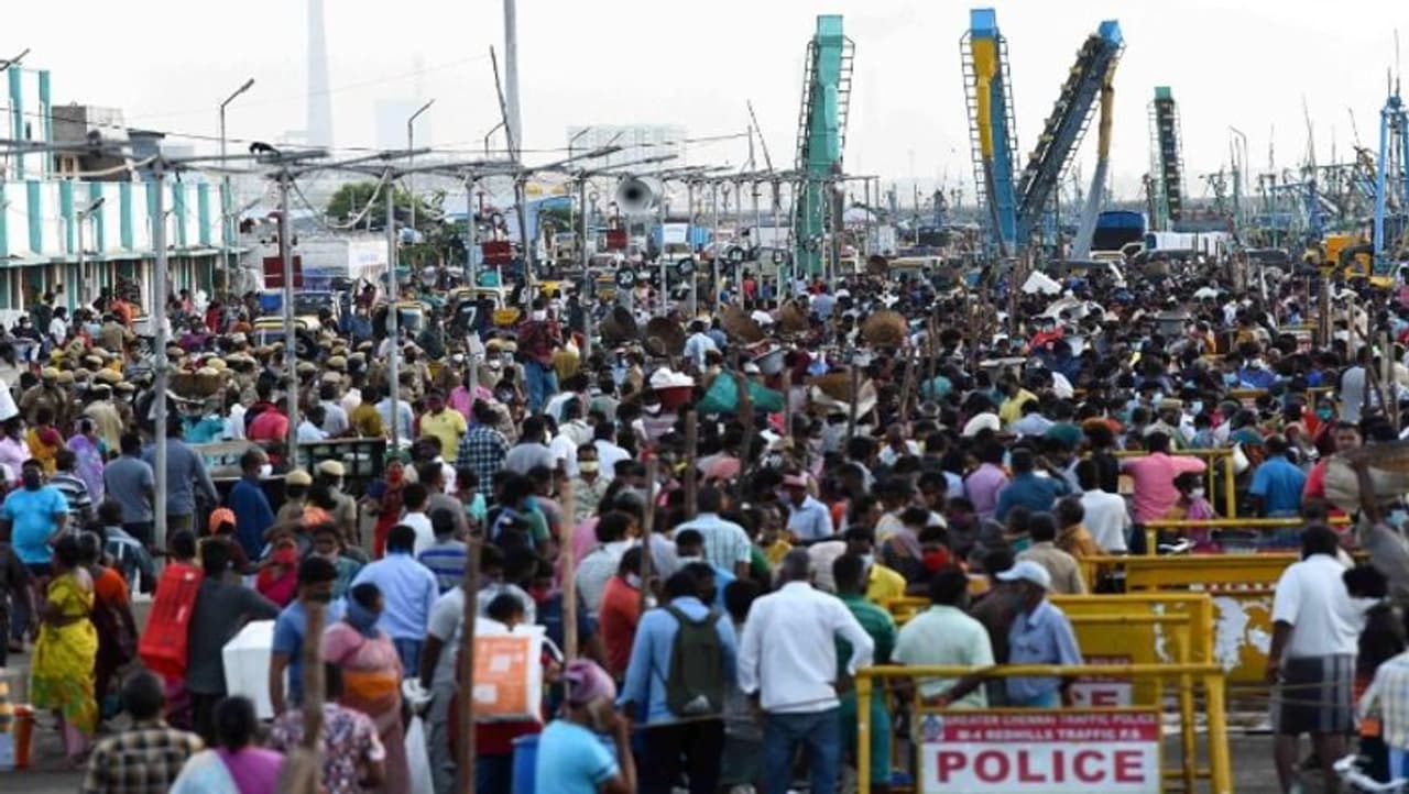 சென்னை காசிமேடு மீன்பிடி துறைமுகத்தில் அதிகாலை 3 மணி முதல் காலை 8 மணி வரை மட்டுமே மீன் விற்கப்படும். அந்தவகையில், எப்படியாவது மீன் வாங்கிவிட வேண்டும் என்பதற்காக சென்னைவாசிகள், காசிமேடு மீன்பிடி துறைமுகத்தில் கூடினர். கூட்டத்தை கட்டுப்படுத்த அங்கு பாதுகாப்பு பணியில் இருந்த போலீஸார், மைக் மூலம் எவ்வளவோ வலியுறுத்தினாலும், மக்கள் அதையெல்லாம் கொஞ்சம்கூட பொருட்படுத்தவில்லை.
