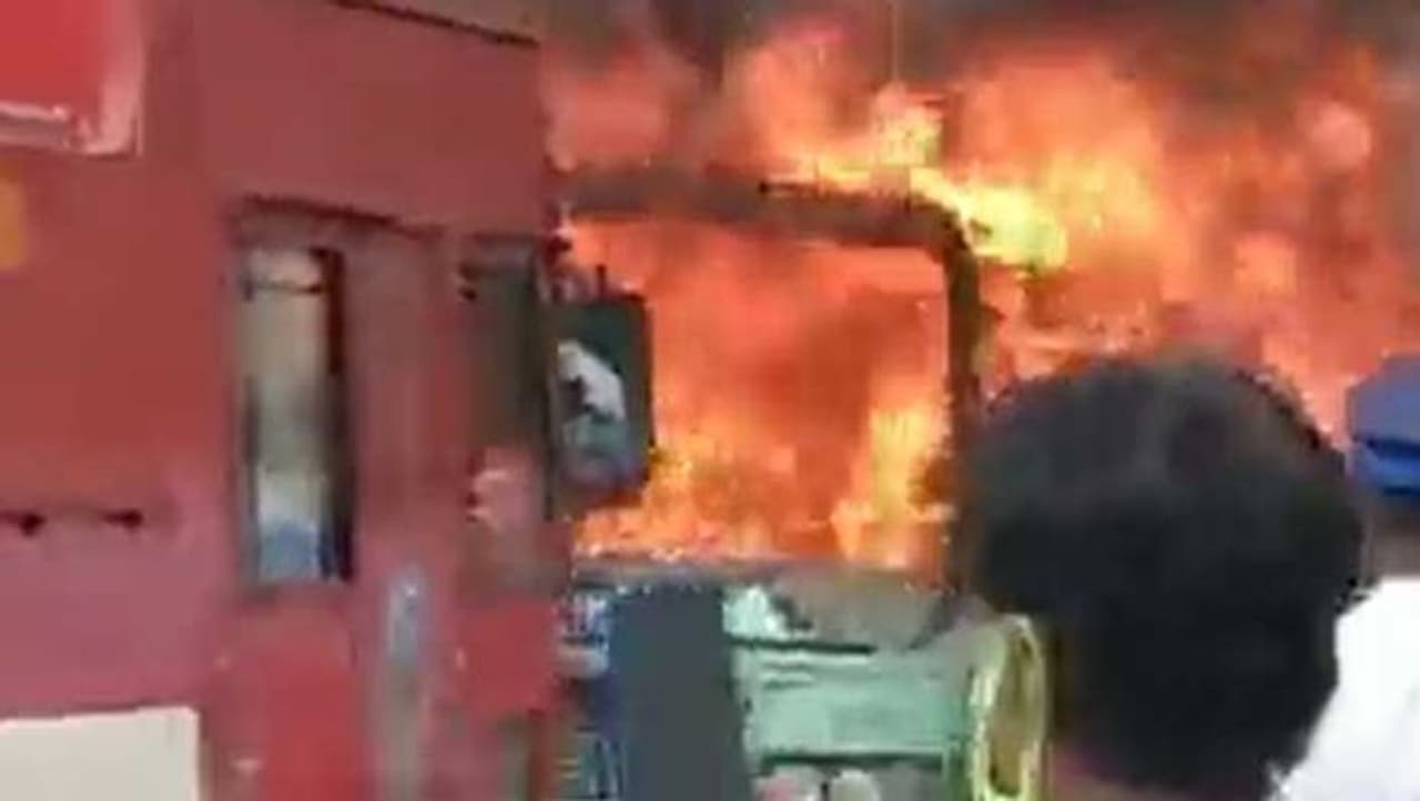 சென்னை கோயம்பேடு அருகே இன்று காலை திருச்சியில் இருந்து சென்னை நோக்கி வந்த அரசுப் பேருந்தின் என்ஜினியிலிருந்து திடீரென கரும்புகை கிளம்பியது. உடனே சுதாரித்துக்கொண்ட ஓட்டுநர் பயணிகள் அனைவரையும் உடனே இறங்க சொன்னார். இதனால், பயணிகள் அலறியடித்துக்கொண்டு இறங்கினர். அடுத்த ஒரு சில நிமிடங்களில் தீ மளமளவென அனைத்து இடங்களிலும் பரவியது.