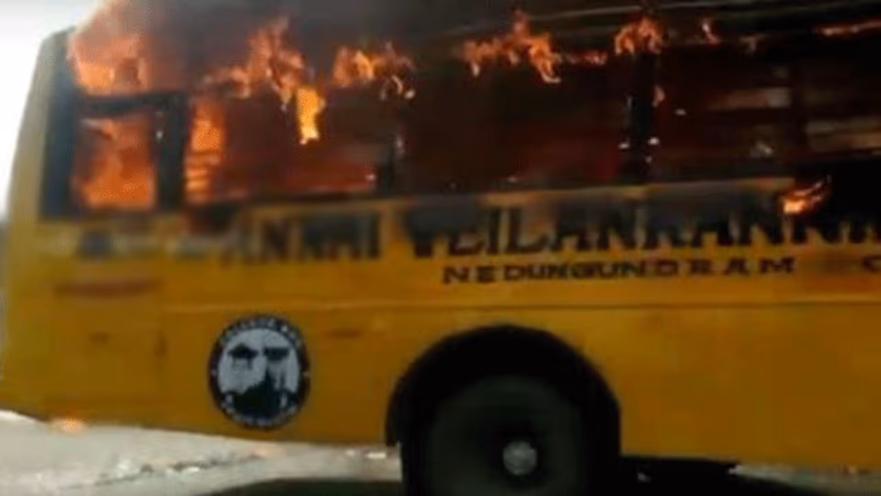 பேருந்தில் இருந்து புகை வந்ததும் ஓட்டுனர் உடனடியாக சாலையோரத்தில் நிறுத்தியுள்ளார். இதனையடுத்து, பேருந்தில் இருந்த மாணவ, மாணவிகள் அலயறியடித்துக் கொண்டு வெளியேறினர். பின்னர், சிறிது நேரத்தில் தீ மளமளவென பேருந்தில் அனைத்து இடங்களிலும் பரவியது.