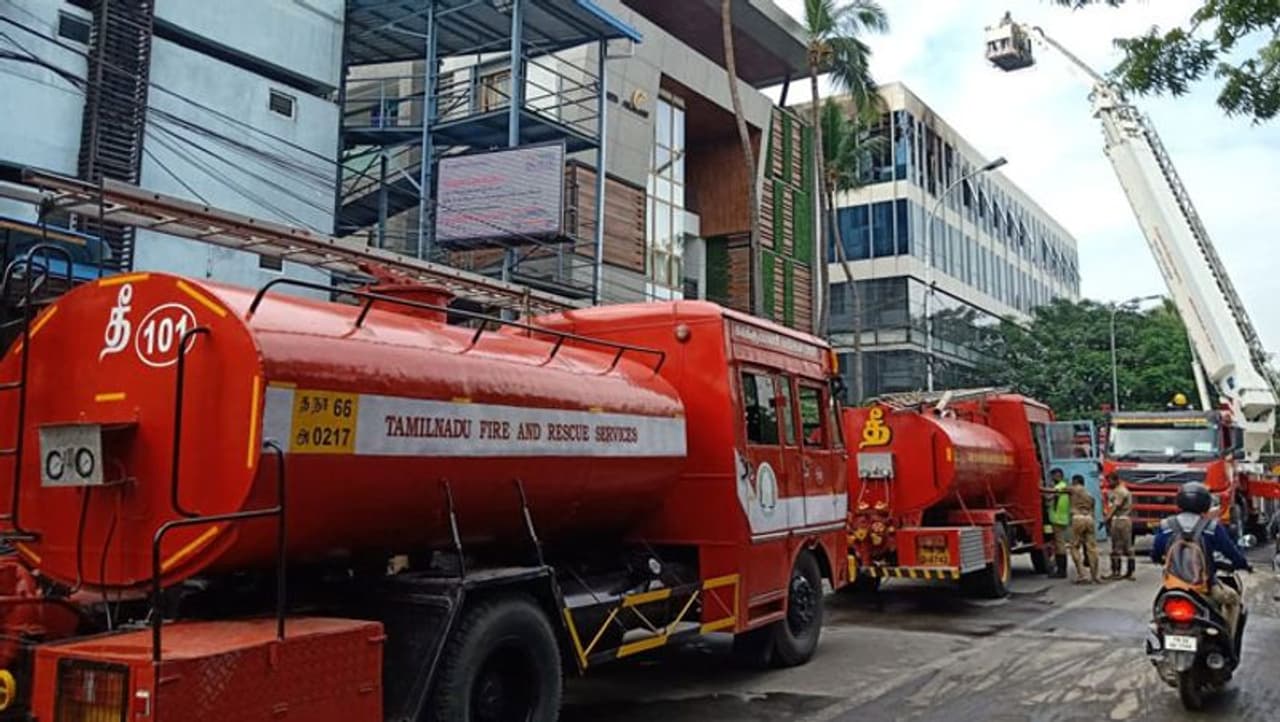 இந்நிலையில், அந்த கட்டிடத்தின் 4-வது தளத்தில் உள்ள தனியார் நிறுவன அலுவலகத்தில் இன்று காலை திடீரென தீ விபத்து ஏற்பட்டது. உடனே அங்கு பாதுகாப்பு பணியில் இருந்த ஊழியர்கள் தீயணைப்புத்துறைக்கு தகவல் தெரிவித்தனர். சம்பவ இடத்திற்கு விரைந்த தீயணைப்பு வீரர்கள் நீண்ட நேரம் போராடி தீயை கட்டுக்குள் கொண்டுவர முயற்சித்து வருகின்றனர்.