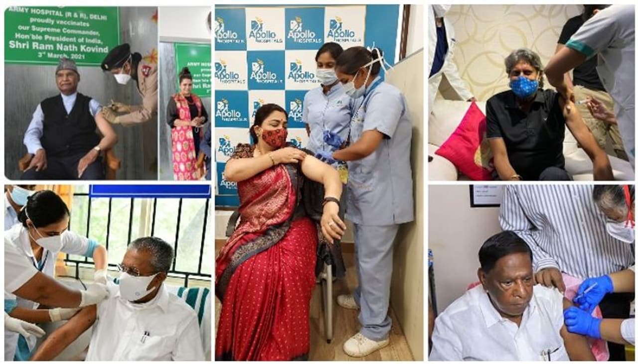 நாட்டு மக்களுக்கு நம்பிக்கை கொடுக்கும் விதமாக பாரத பிரதமர் மோடி டெல்லியில் உள்ள எய்ம்ஸ் மருத்துவமனையில் முதல் ஆளாக தடுப்பூசி செலுத்திக் கொண்டார். அதன் பின்னர் குடியரசு துணைத் தலைவர் வெங்கைய நாயுடு, மத்திய உள்துறை அமைச்சர் அமித்ஷா, கேரள முதல்வர் பினராயி விஜயன், தமிழக துணை முதல்வர் ஓ.பன்னீர்செல்வம், அமைச்சர்கள் காமராஜ், மாஃபா பாண்டியராஜன் மற்றும் திரையுலகினர், விளையாட்டுத்துறை பிரபலங்கள் என பலரும் தொடர்ந்து தடுப்பூசி செலுத்தி வருகின்றனர்.