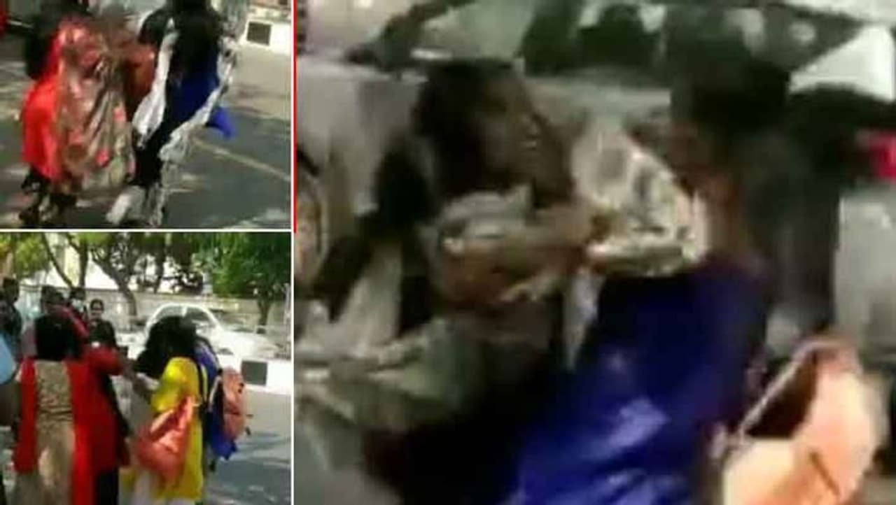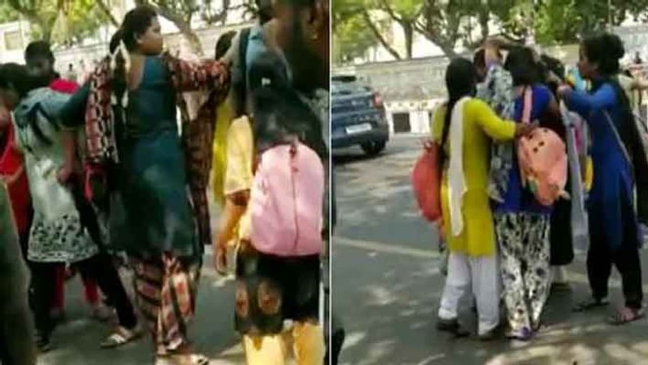 சிறிது நேரத்தில் வாயால் பேசிக்கொண்டிருந்த போதே கை கலப்பாக மாறியது. ஒரு மாணவியின் தலைமுடியை இன்னொரு மாணவி பிடித்து இழுத்து அடித்தார். பதிலுக்கு இந்த மாணவியும் அந்த மாணவியின் கன்னத்தில் அறைந்து.. தரையில் தள்ளி தாக்கினார். அங்கிருந்த சக மாணவிகள் சிலர் பெரும் பேராட்டத்திற்கு இடையே இருவரையும் தடுத்தனர். இது தொடர்பான வீடியோ சமூகவலைதளங்களில் வைரலானது.