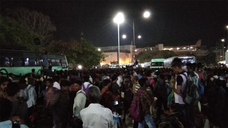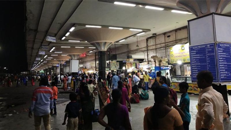 முன்னெச்சரிக்கையாக குறைந்த அளவே பேருந்துகள் இயக்கப்படுவதால், பேருந்து கிடைக்காமல் மக்கள் அவதியில் உள்ளனர். ஒரே சமயத்தில் கூட்டம் கோயம்பேடு பேருந்து நிலையத்தில் குவிந்துள்ளதால், திரும்பும் பக்கமெல்லாம் கூட்டமாக உள்ளது. ரயில் சேவையும் நிறுத்தப்பட்டுவிட்டதால், பேருந்து சேவையை நம்பி மக்கள் குவிந்துவருகிறார்கள்.