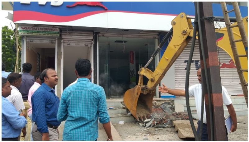 இதனையடுத்து, நேற்று சோழிங்கநல்லூர் தாசில்தார் பிரபாகரன், வருவாய் அலுவலர் ஐயப்பன், கிராம நிர்வாக அலுவலர் பாக்கியலட்சுமி மற்றும் மாநகராட்சி அதிகாரிகள், நீலாங்கரை போலீஸ் பாதுகாப்புடன் பொக்லைன் இயந்திரத்துடன் அங்கு வந்து ஆக்கிரமித்து கட்டப்பட்ட கடைகள் மற்றும் கடைகளை இடிக்க முயன்றனர்.