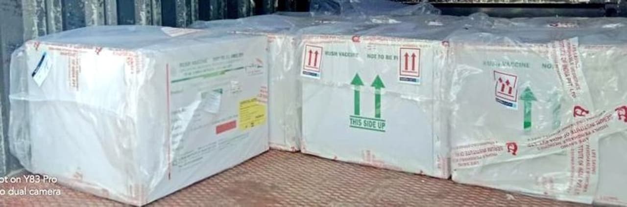 இன்று பிற்பகல் மும்பையிலிருந்து சென்னை வந்த இண்டிகோ ஏா்லைன்ஸ் விமானத்தில் 7 பாா்சல்களில் 220 கிலோ தடுப்பூசி மருந்துகள் வந்தன.