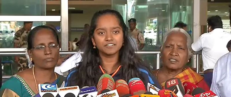 பிரேசிலில் நடைபெற்ற உலகக்கோப்பை துப்பாக்கிச் சுடும் தங்கப்பதக்கம் வென்ற இளவேனில் வாலறிவன் இன்று தமிழகம் வந்தார். அவருக்கு சென்னை விமான நிலையத்தில் உற்சாக வரவேற்பு அளிக்கப்பட்டது.