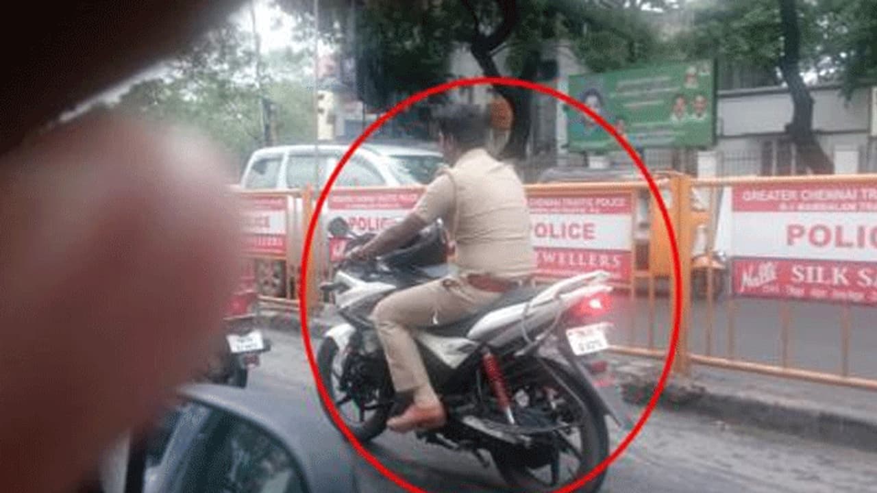 ஹெல்மெட் அணியாமல் இருசக்கர வாகனத்தில் சென்ற மாம்பலம் காவல் உதவி ஆய்வாளர் அதிரடியாக பணியிடை நீக்கம் செய்யப்பட்டுள்ளார்.