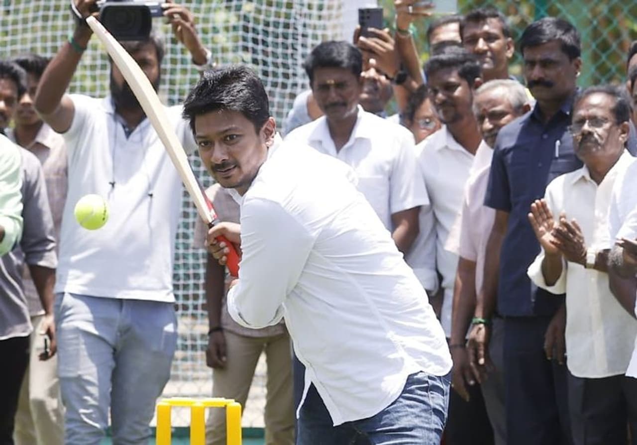 விழாவின் ஒரு பகுதியாக அஷ்வின் பந்து வீச, அதனை அமைச்சர் உதயநிதி ஸ்டாலின் மட்டையால் பறக்கவிட்டார்.